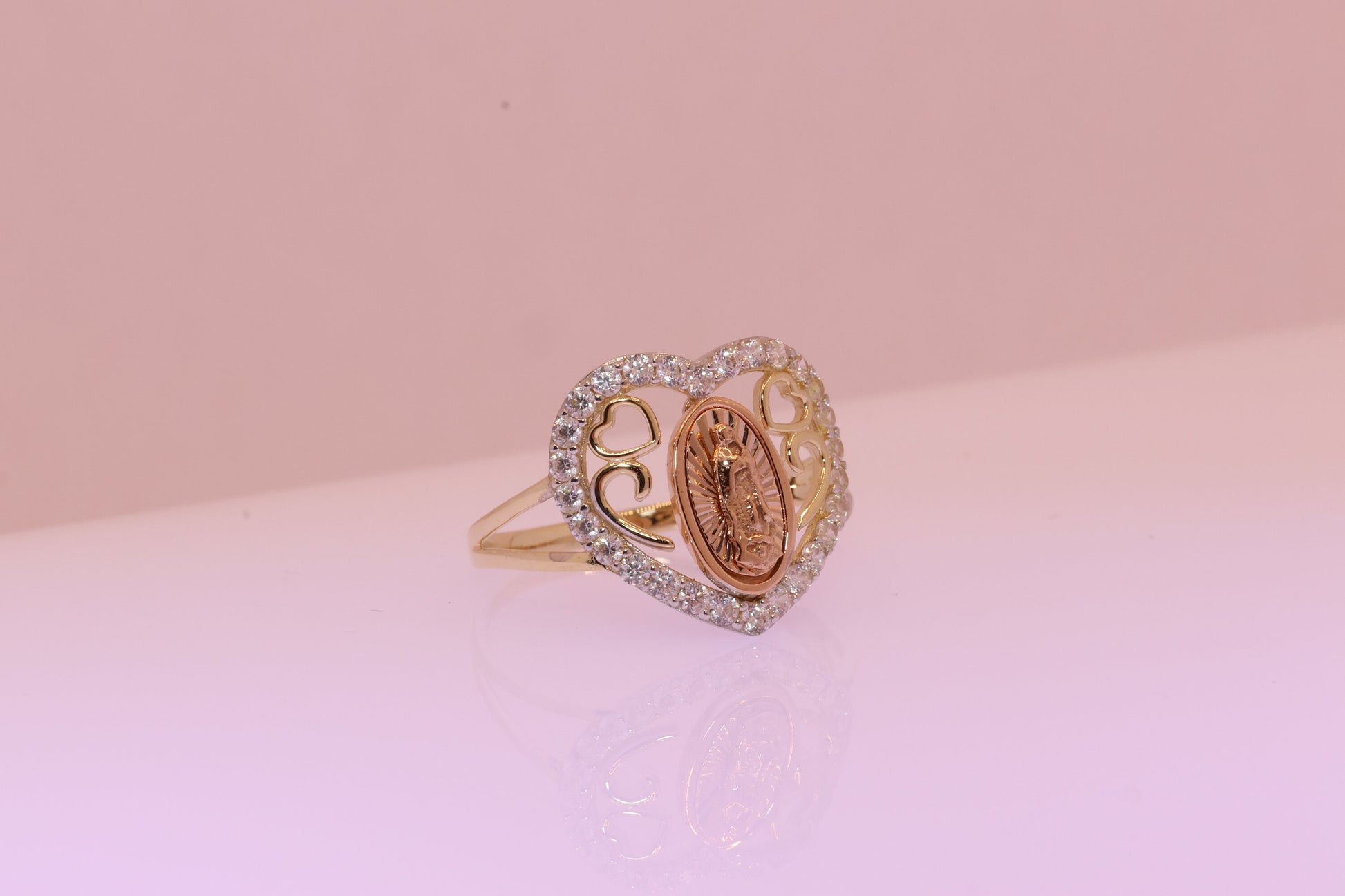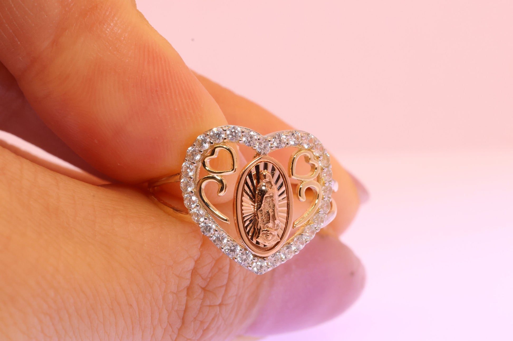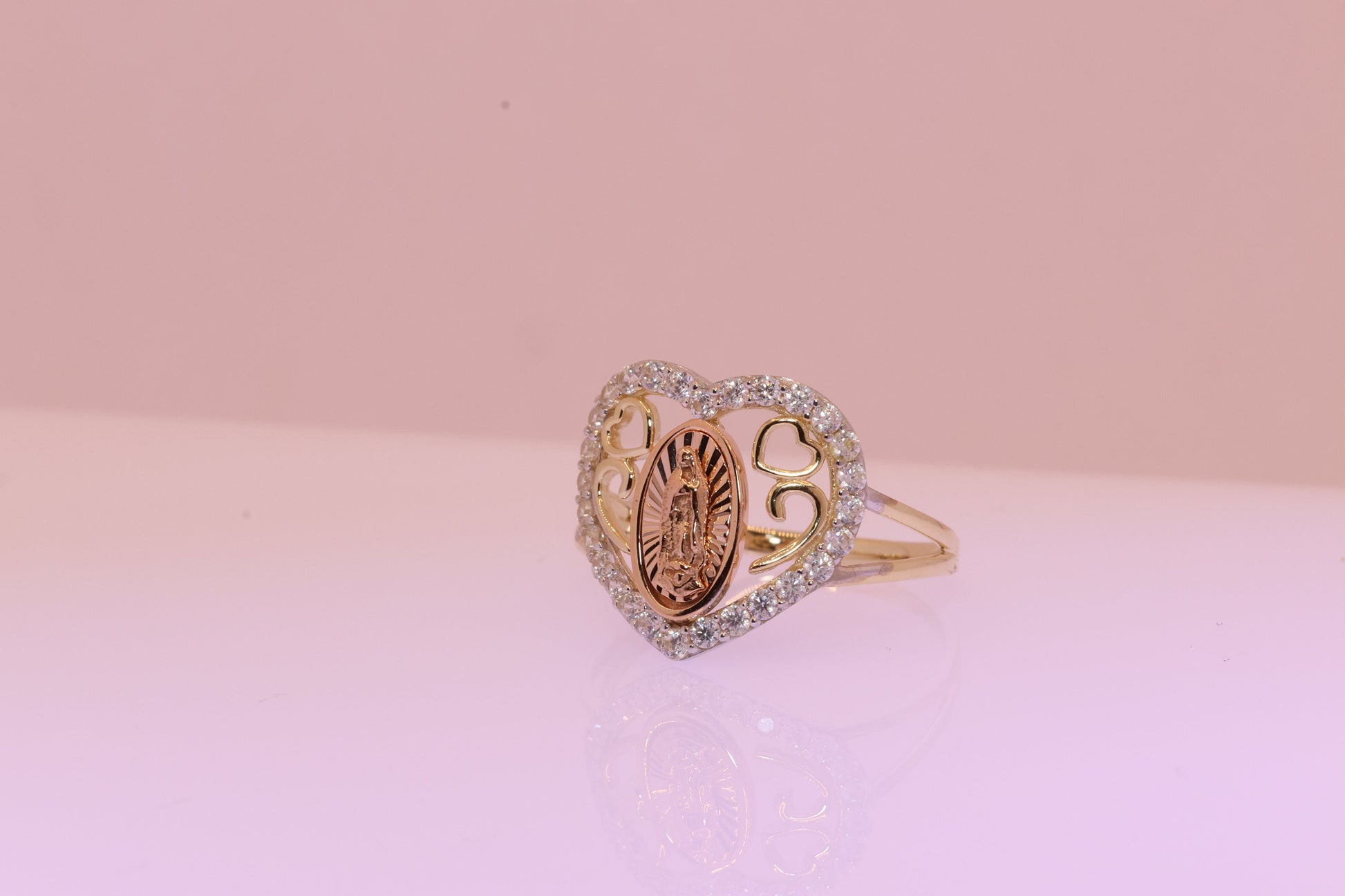 14k Solid Gold Virgin Mary Virgen Maria Lady Guadalupe Ring OO