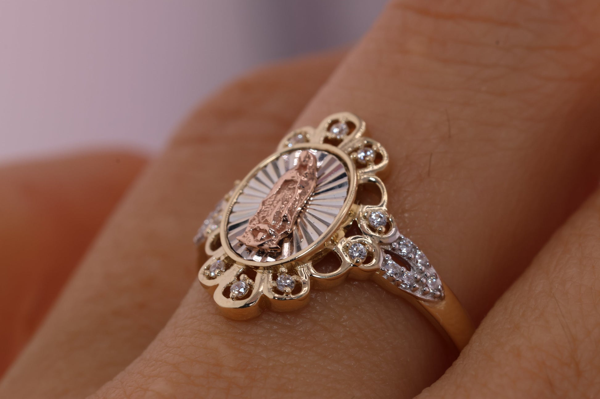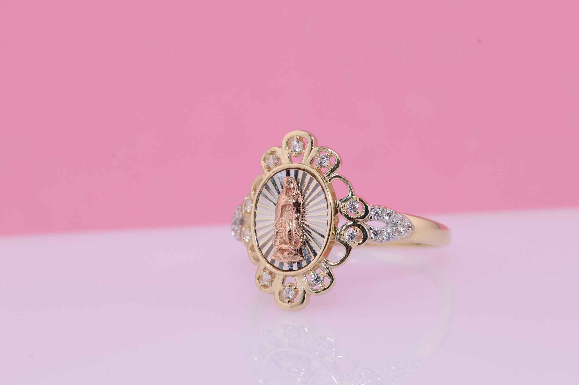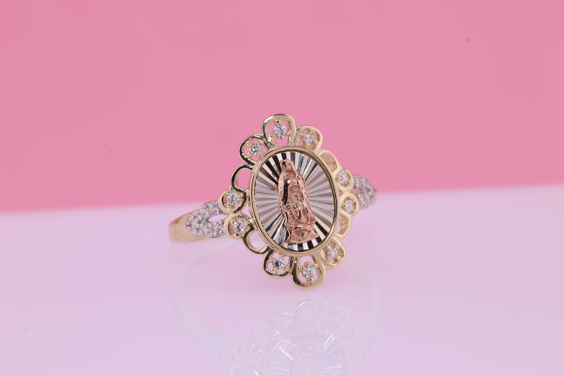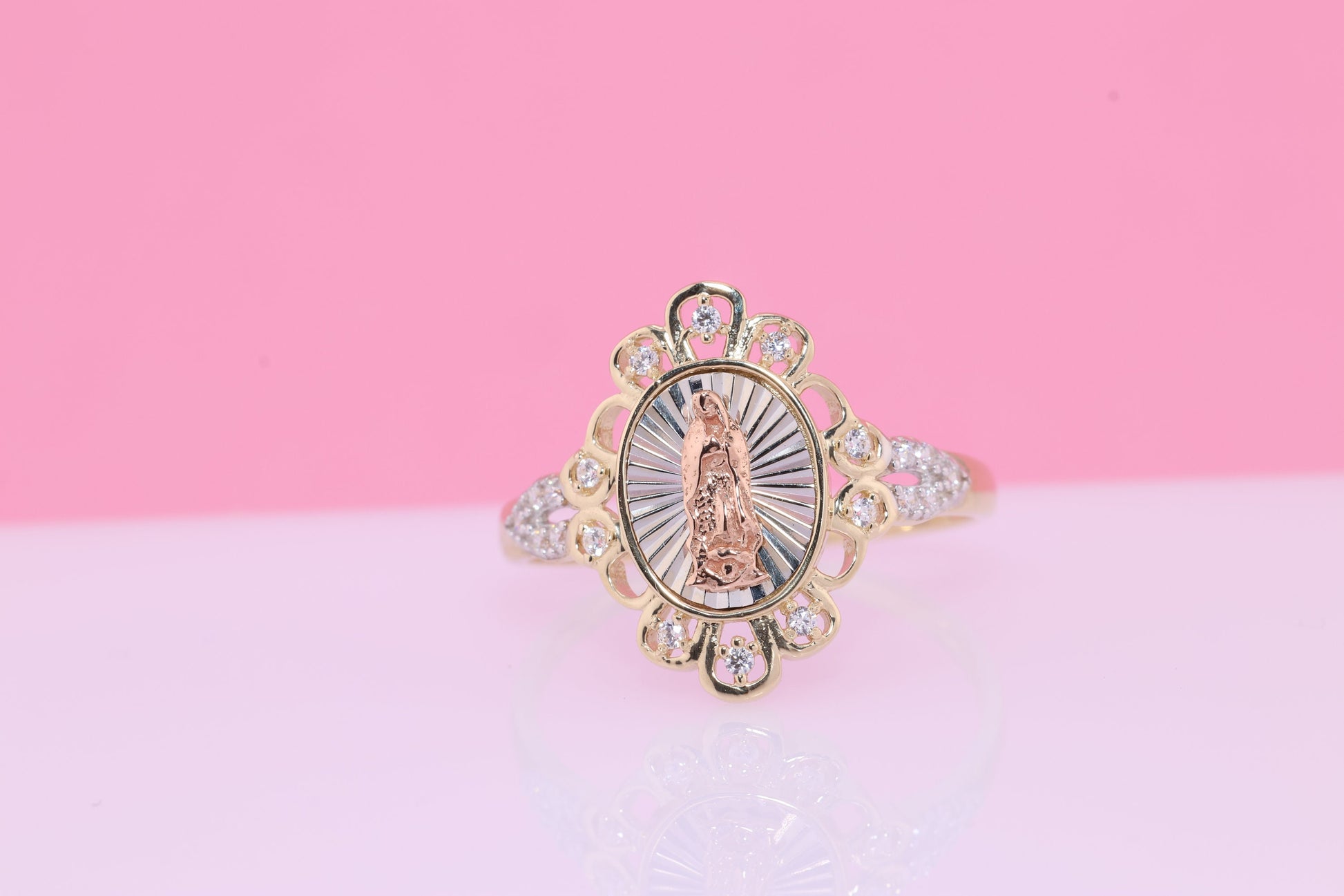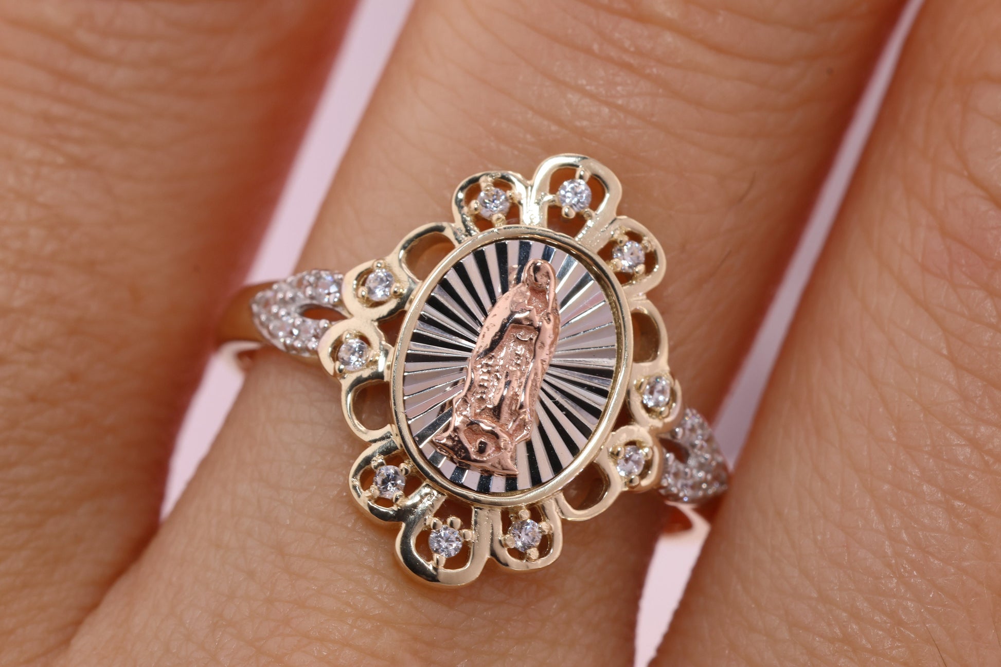 14k Solid Gold Virgin Mary Virgen Maria Lady Guadalupe Ring P