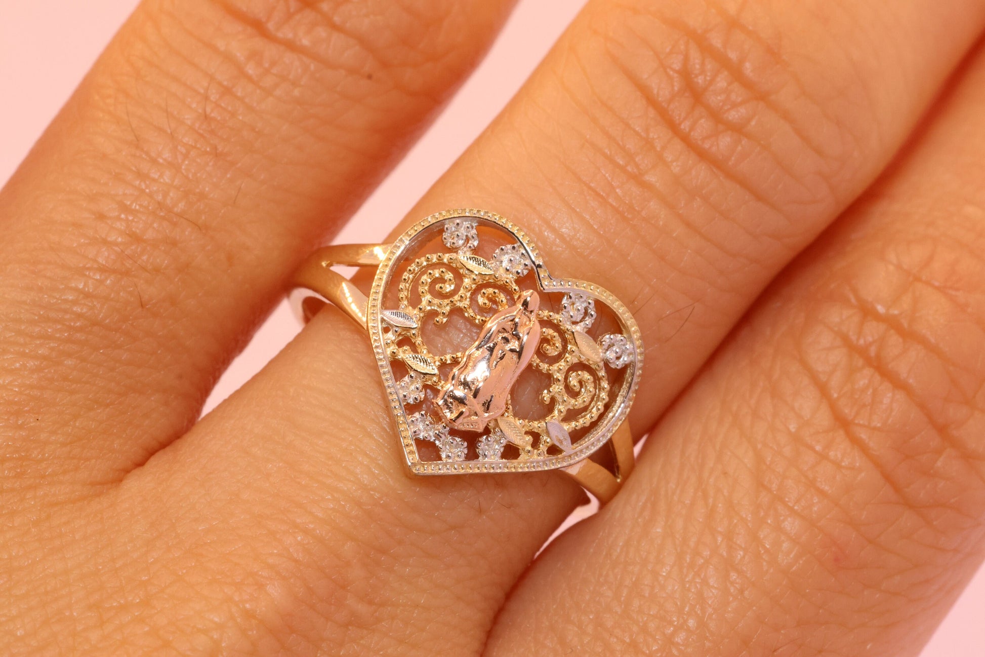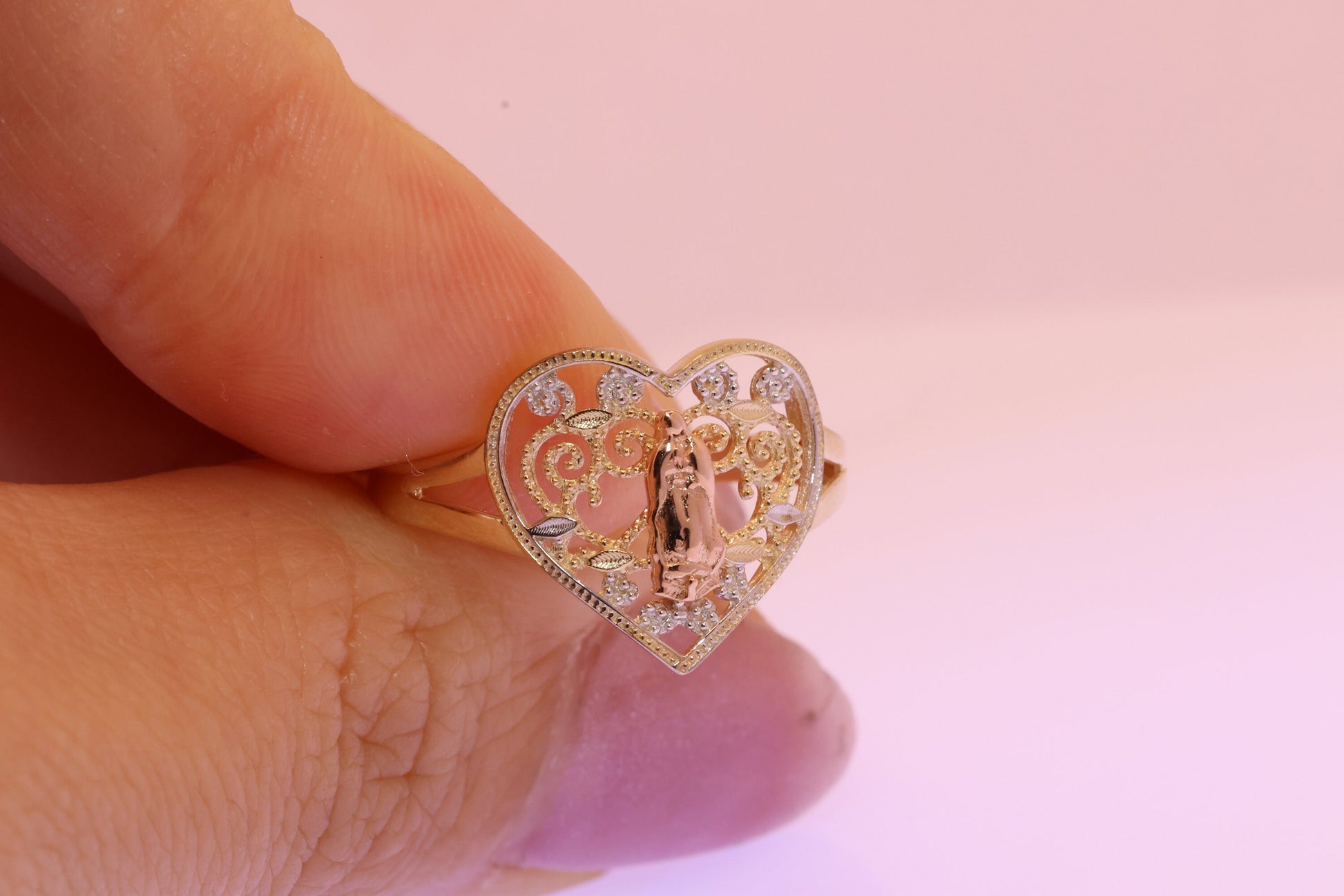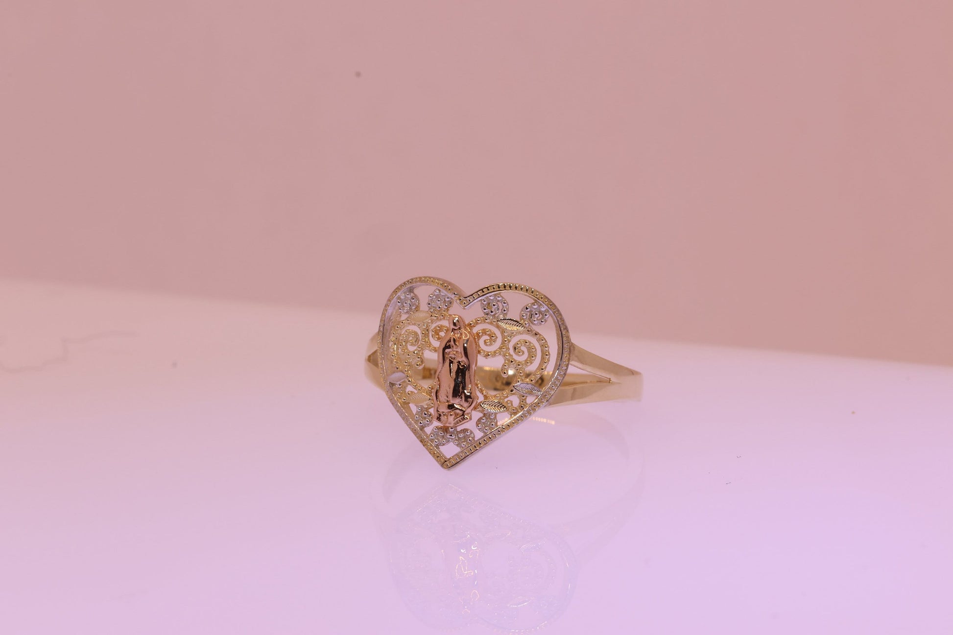 14k Solid Gold Virgin Mary Virgen Maria Lady Guadalupe Ring PP