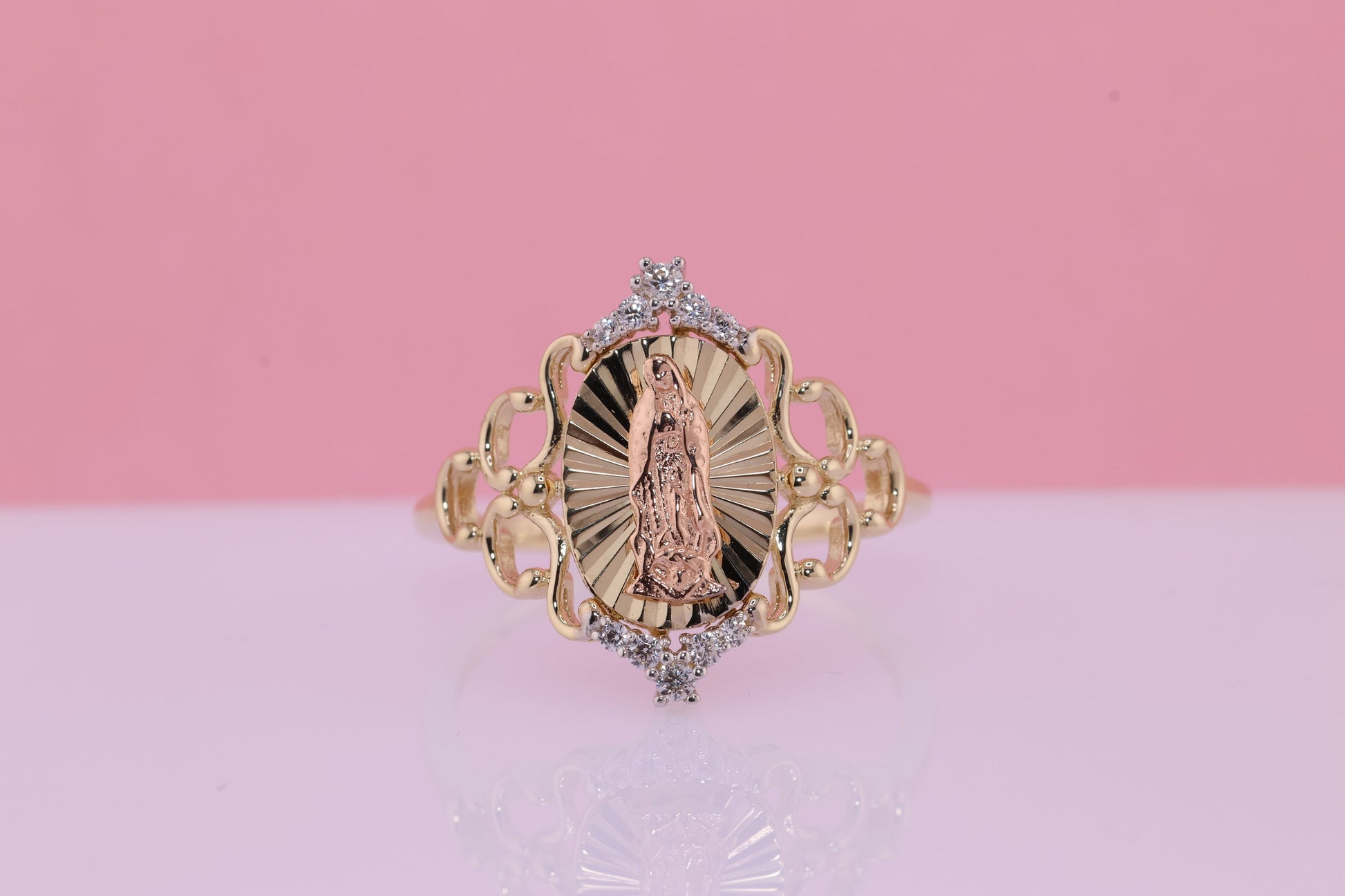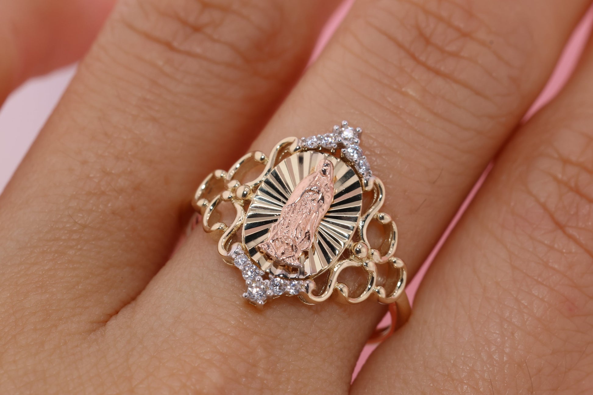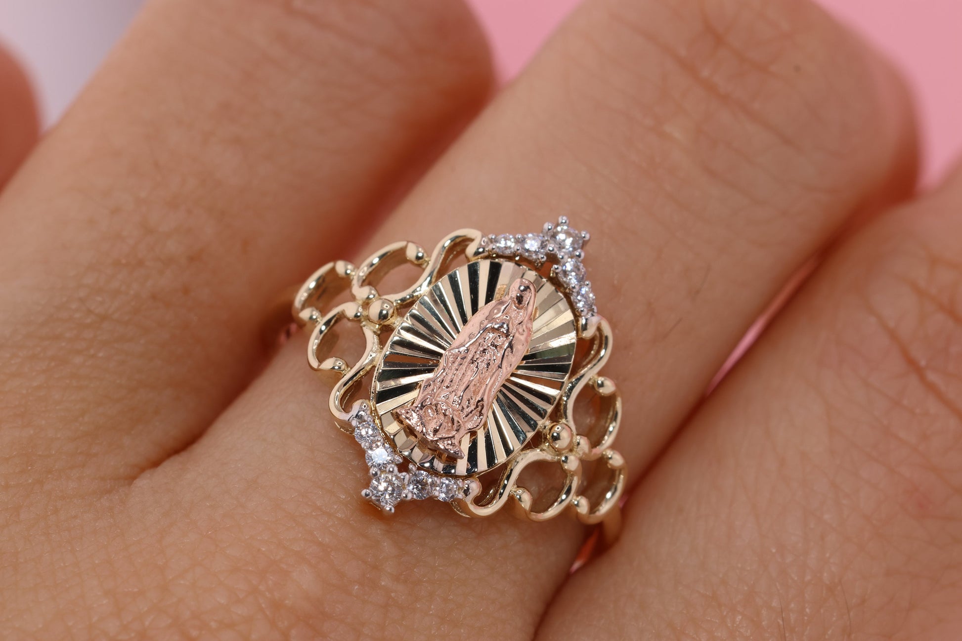 14k Solid Gold Virgin Mary Virgen Maria Lady Guadalupe Ring R