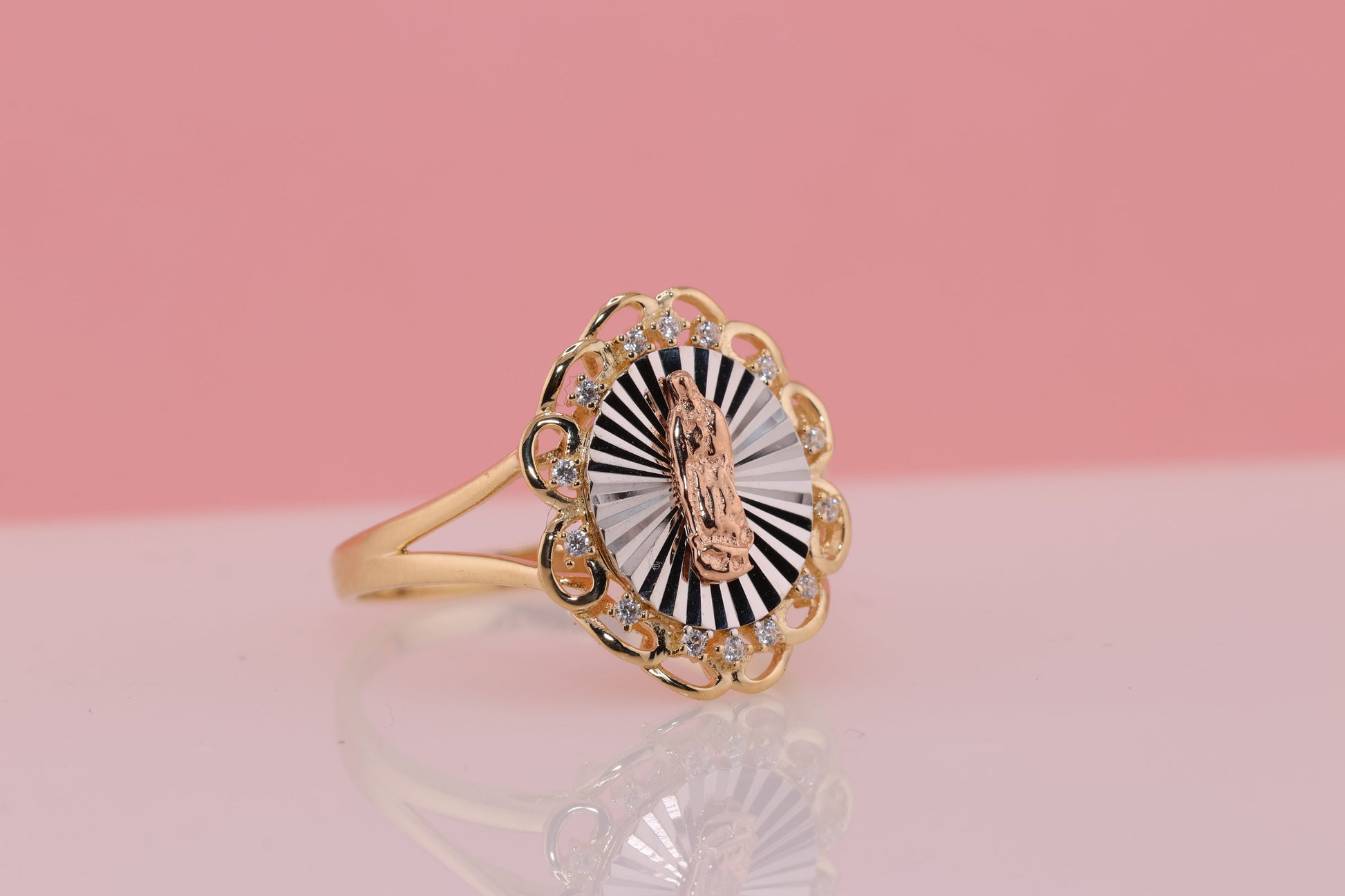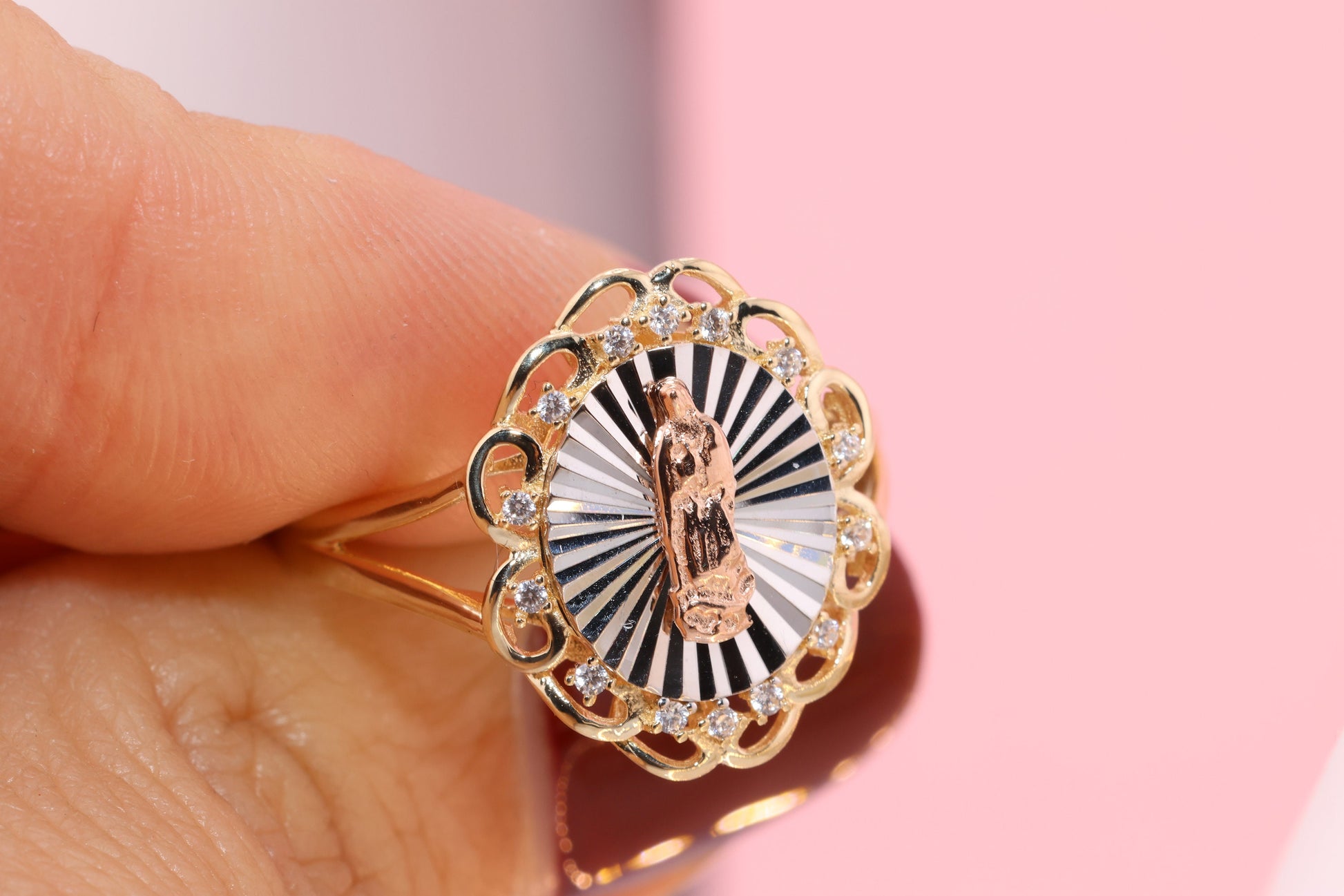 14k Solid Gold Virgin Mary Virgen Maria Lady Guadalupe Ring SS