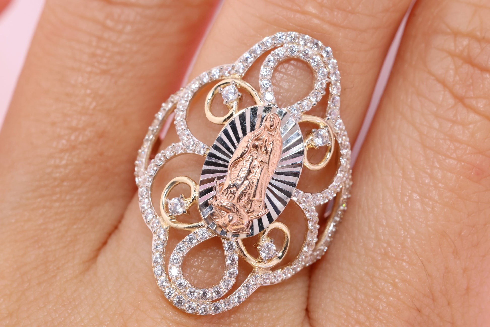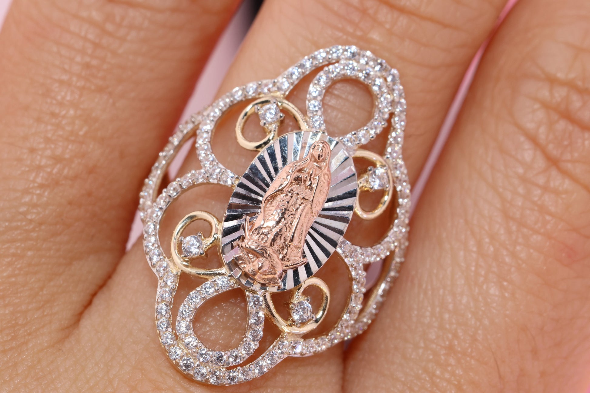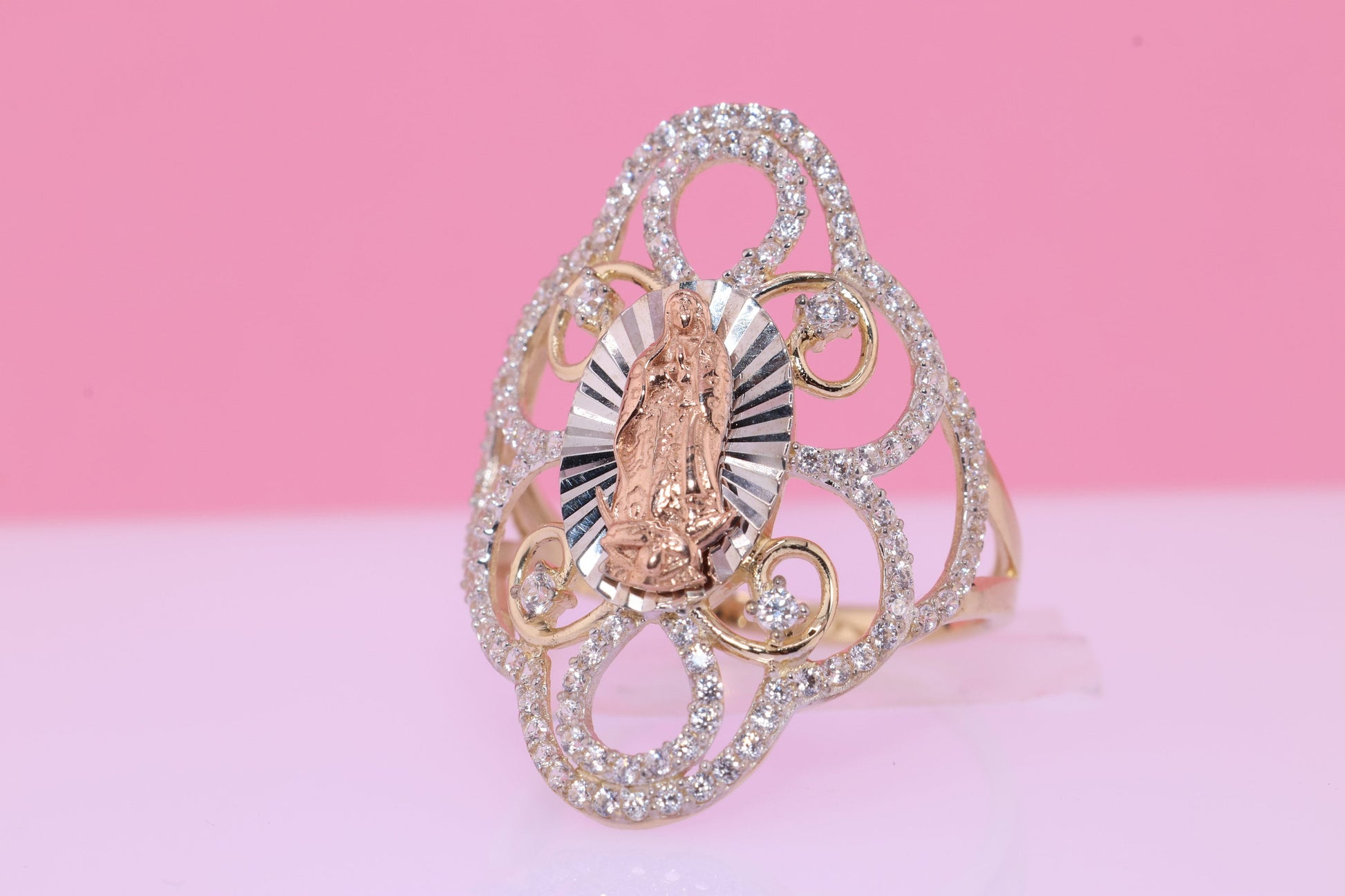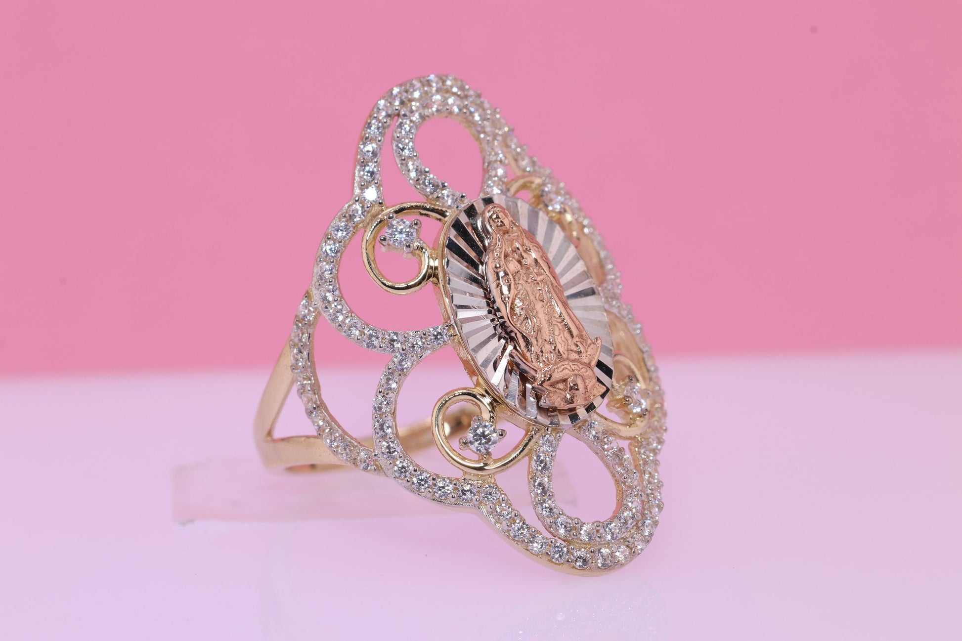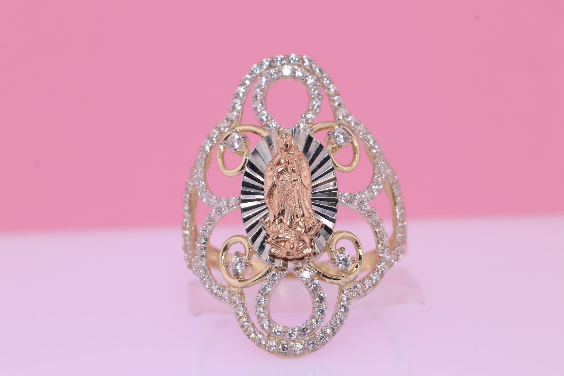 14k Solid Gold Virgin Mary Virgen Maria Lady Guadalupe Ring T
