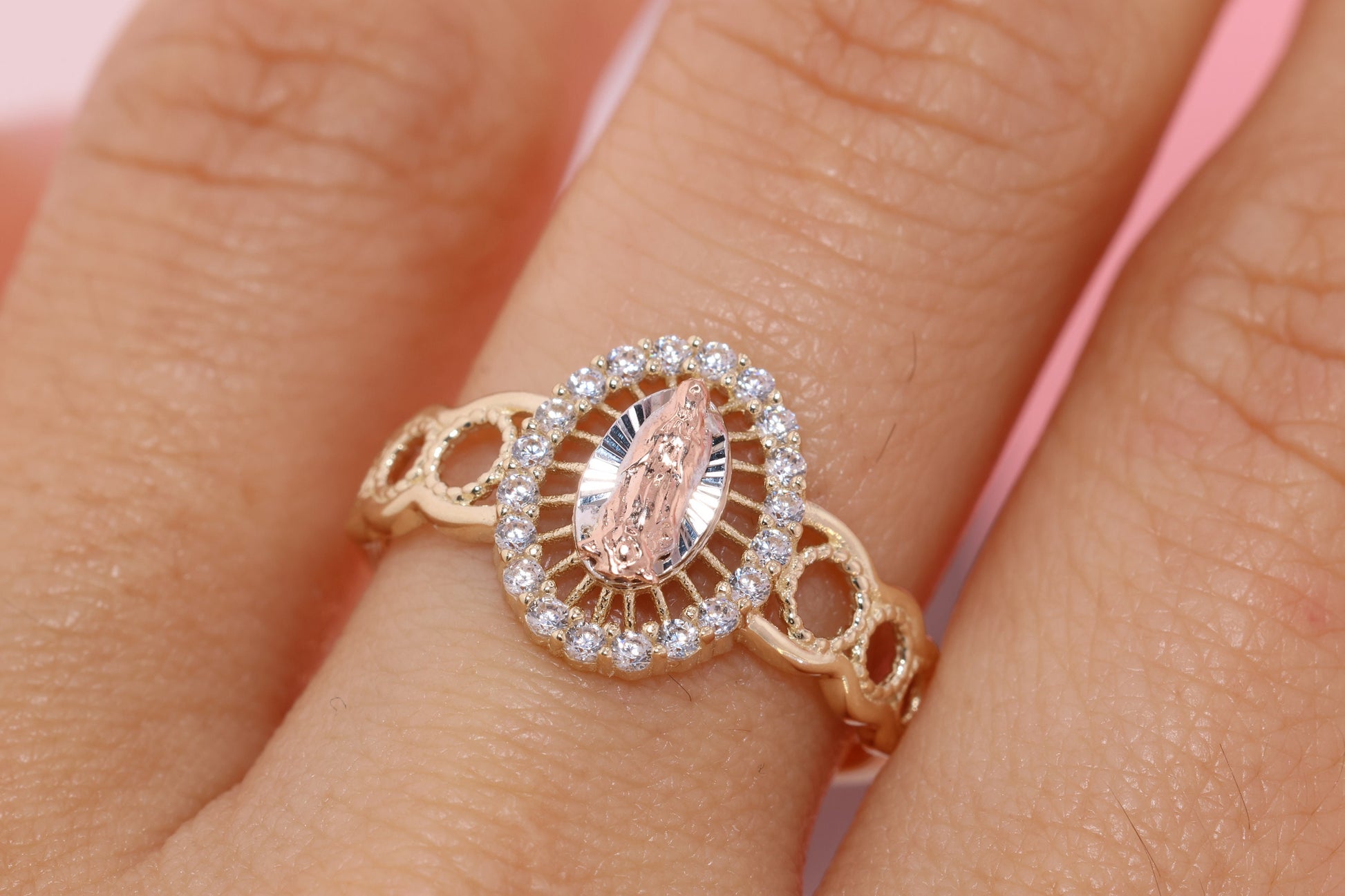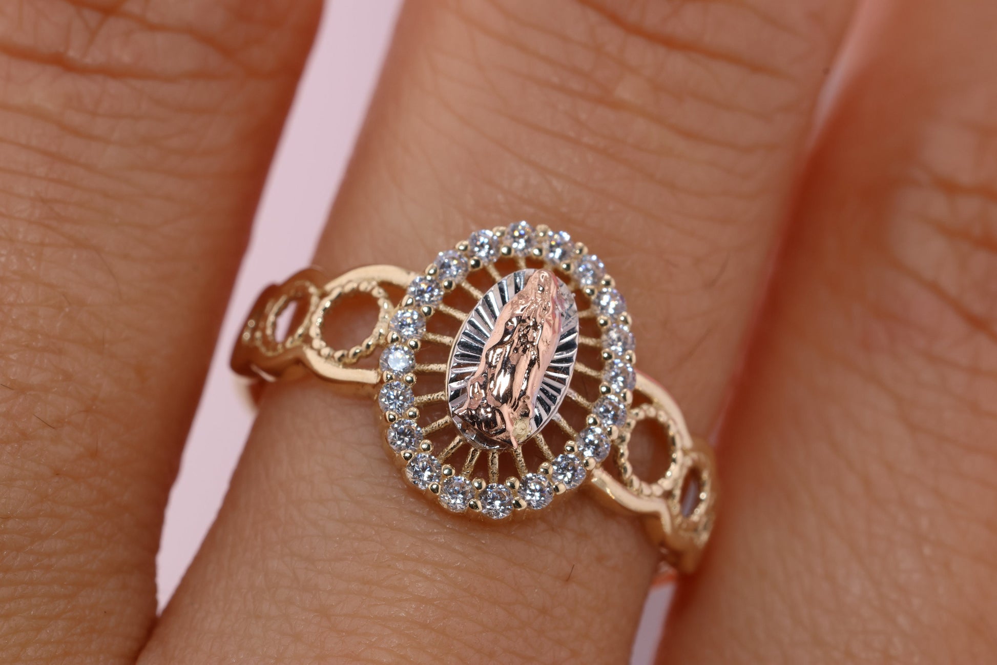 14k Solid Gold Virgin Mary Virgen Maria Lady Guadalupe Ring U