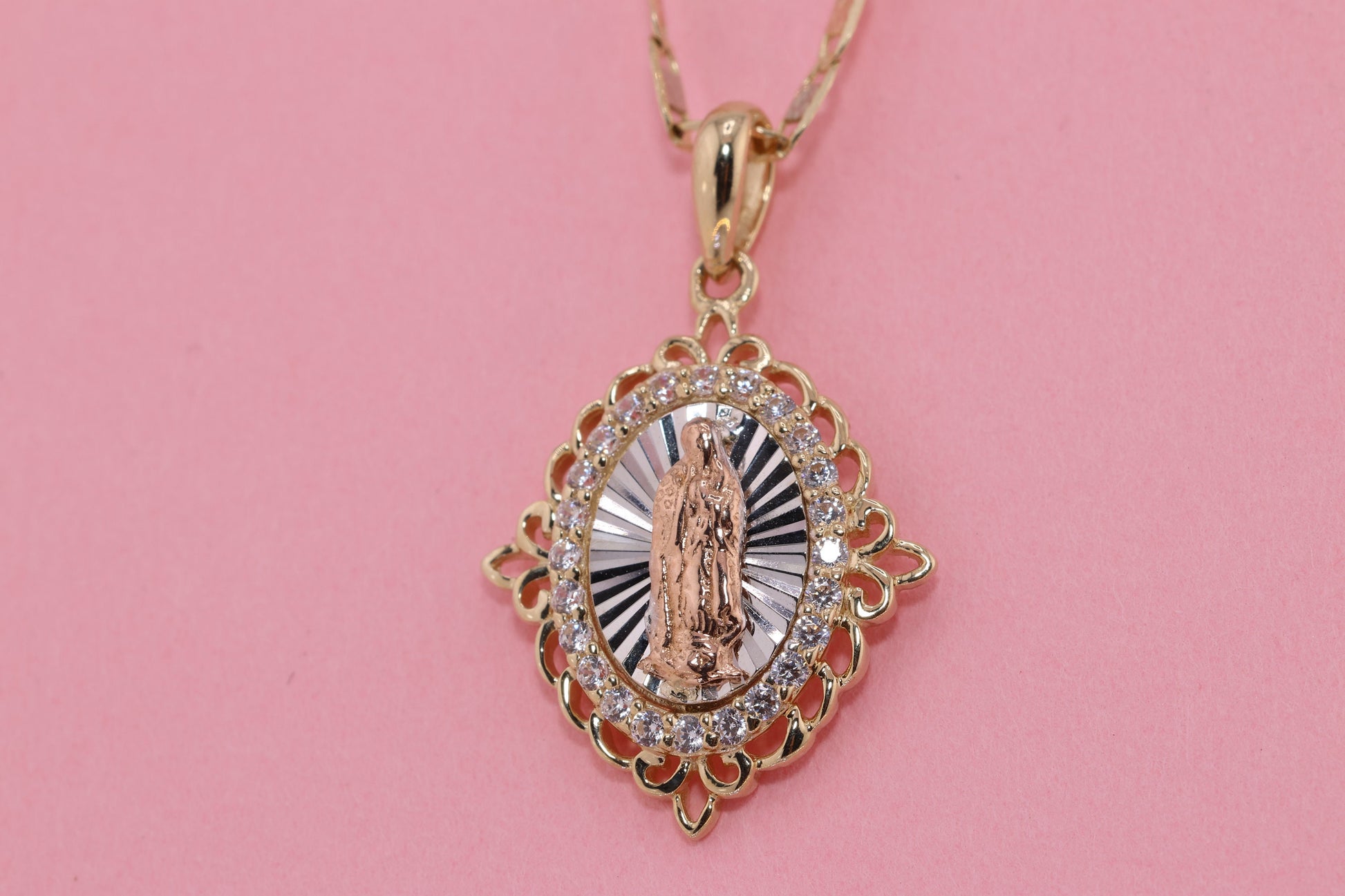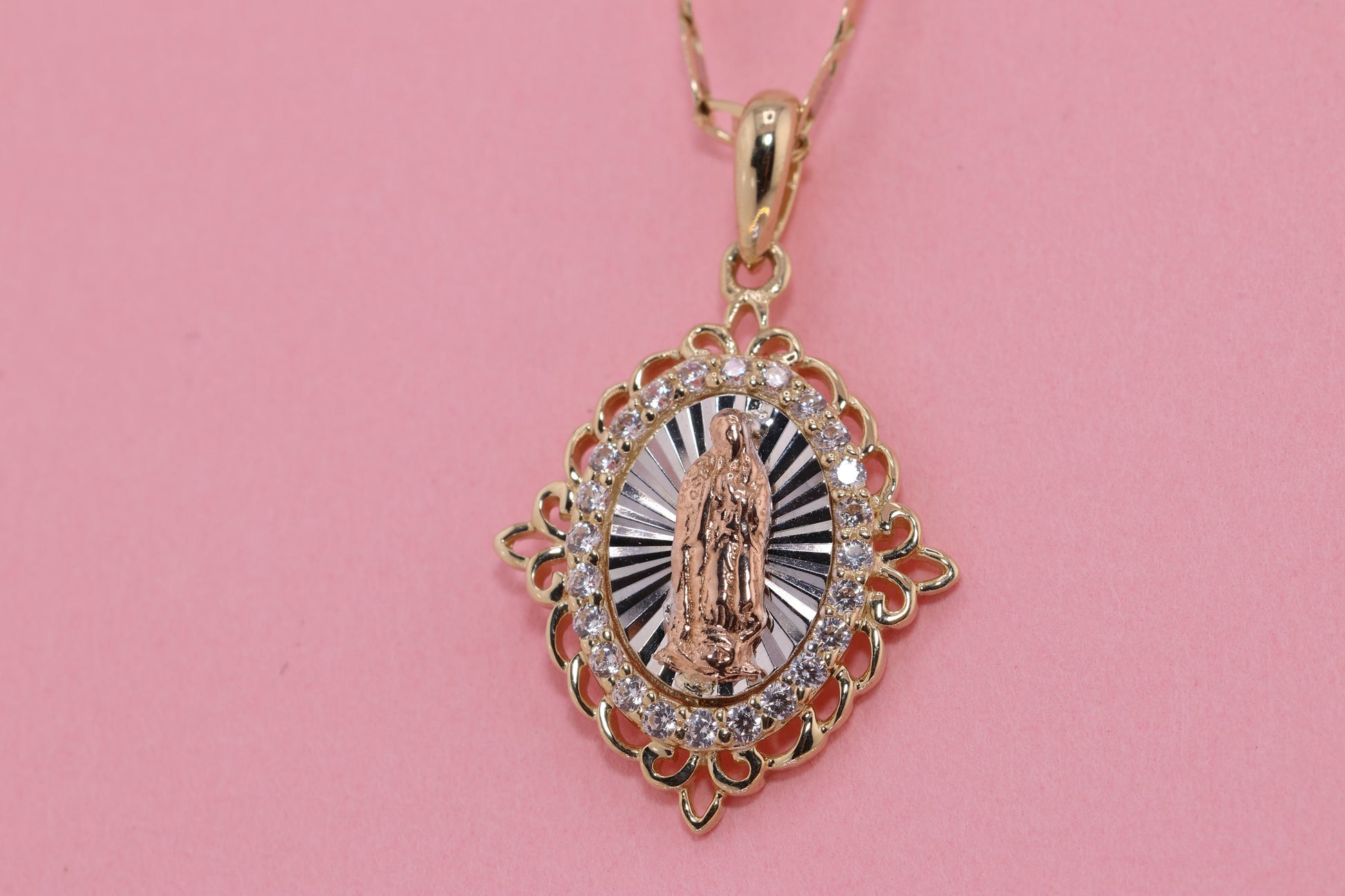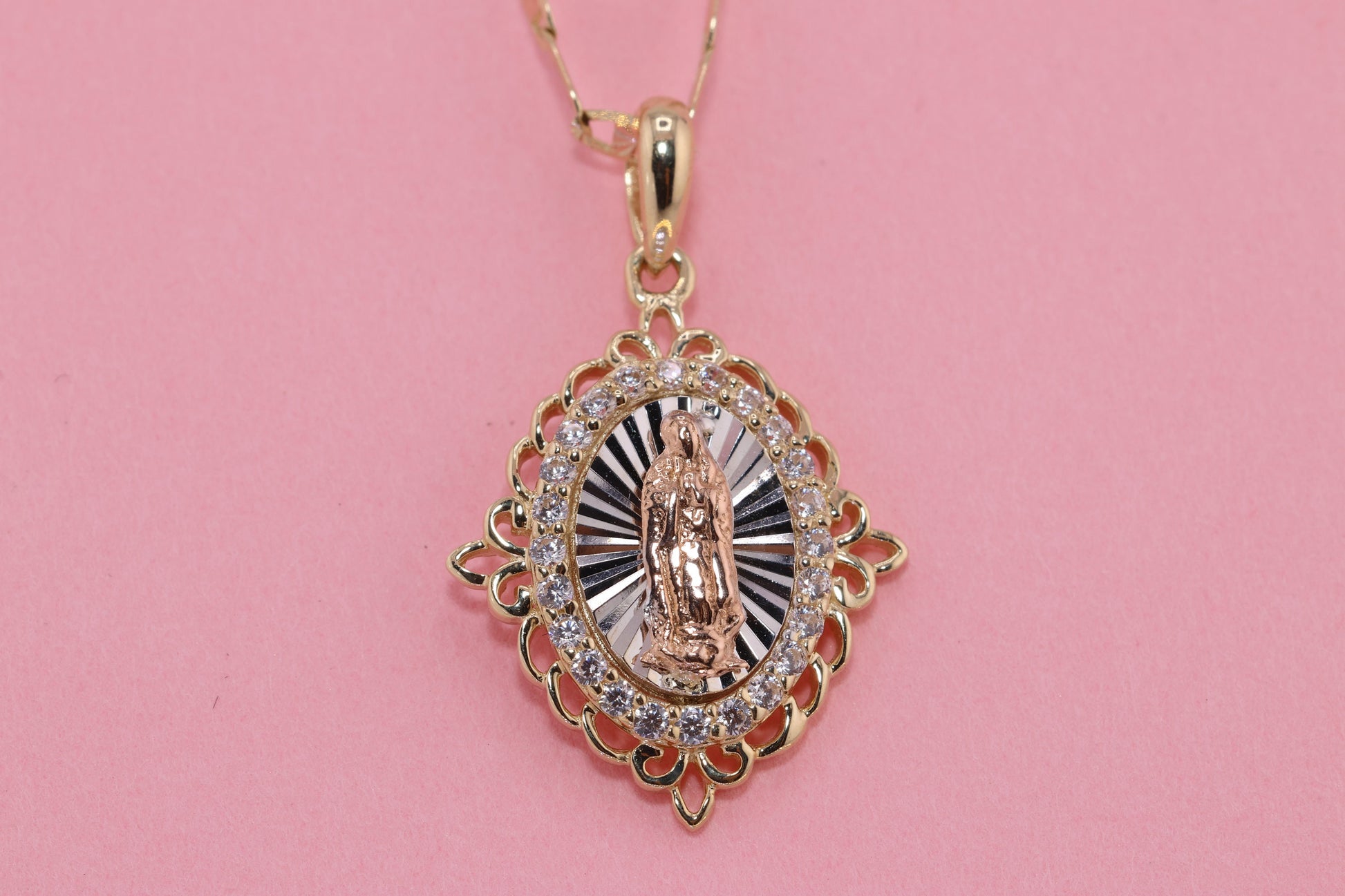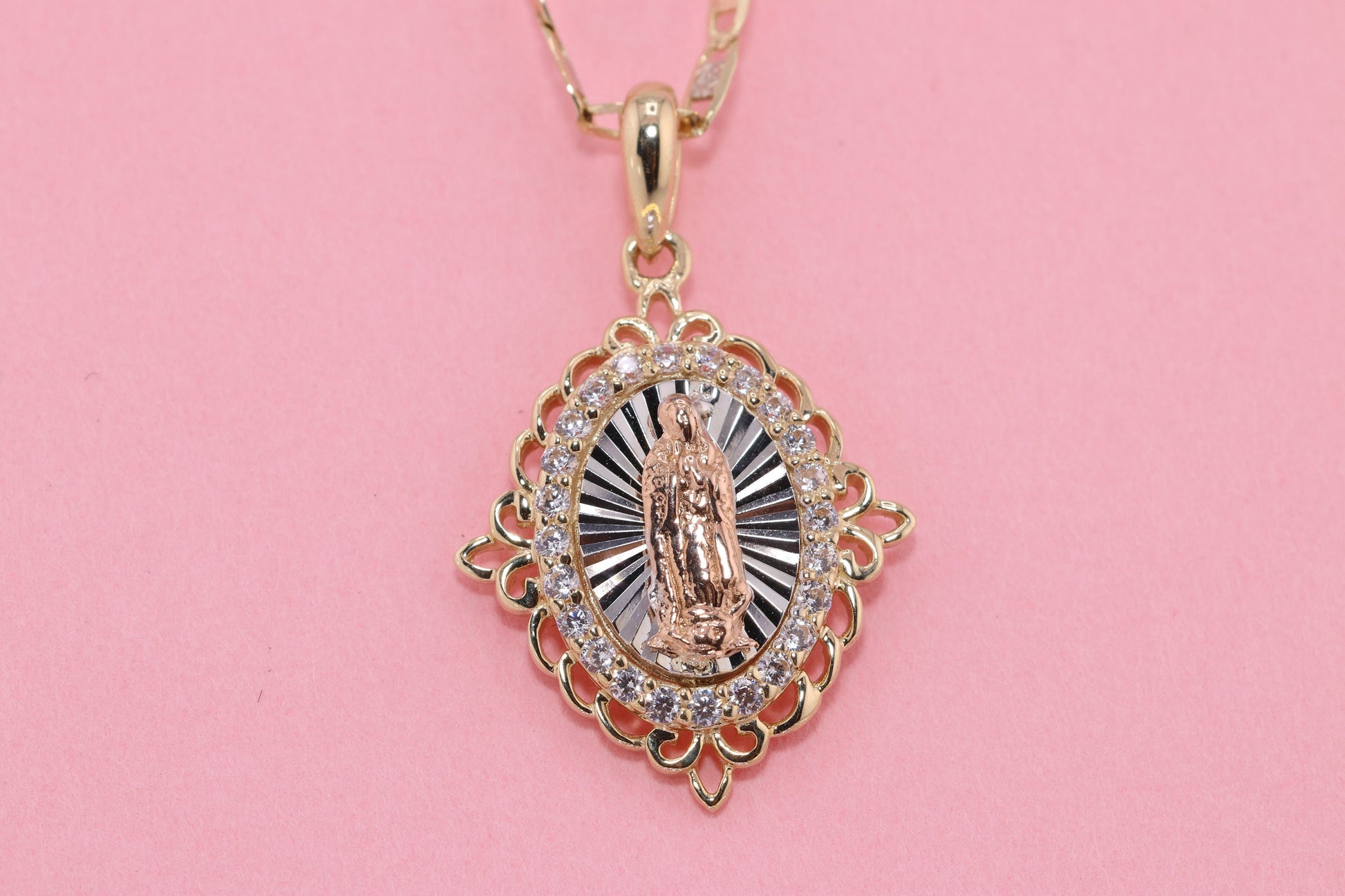 14k Solid Gold Virgin Mary Virgin Maria Lady Guadalupe Heart Pendant A