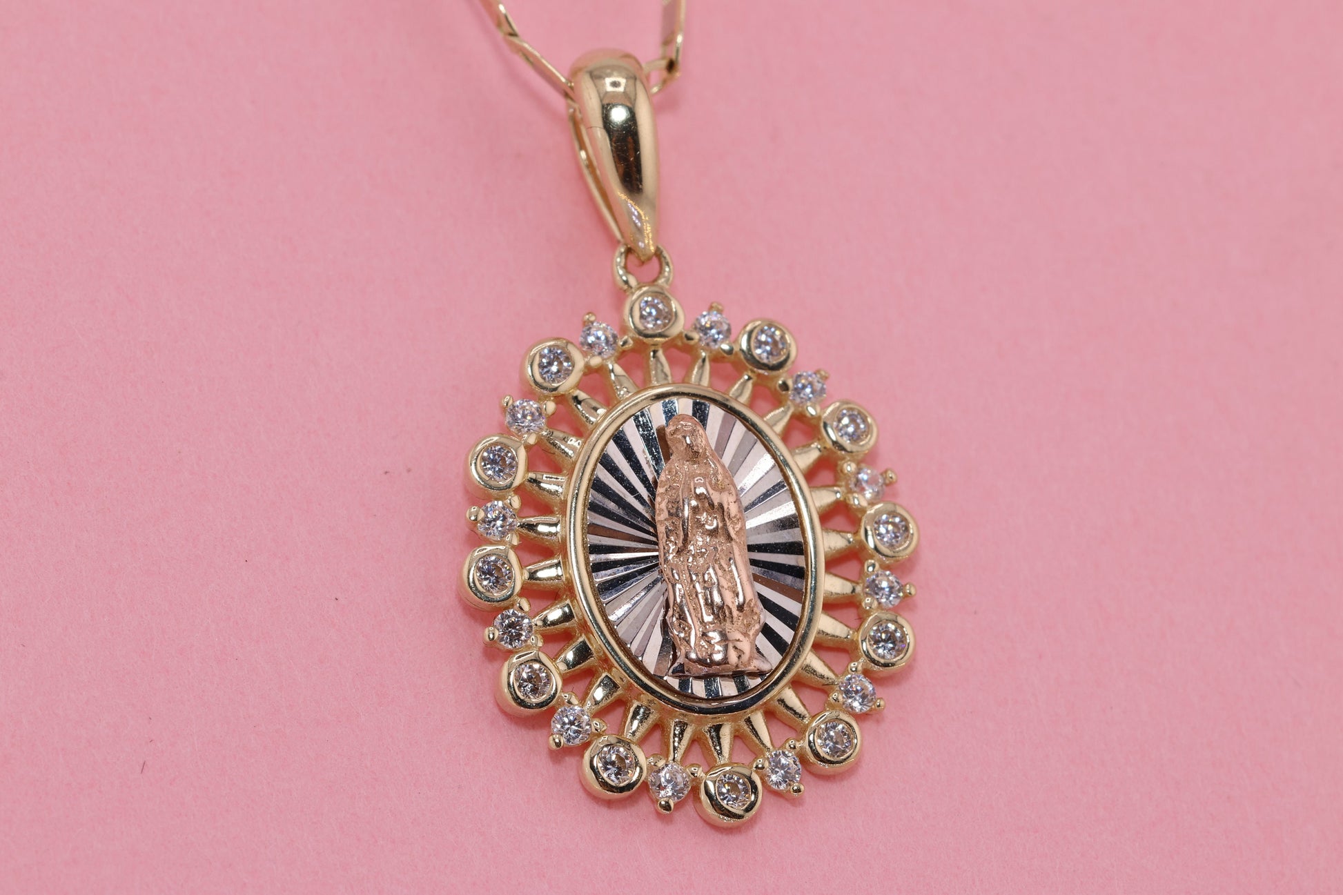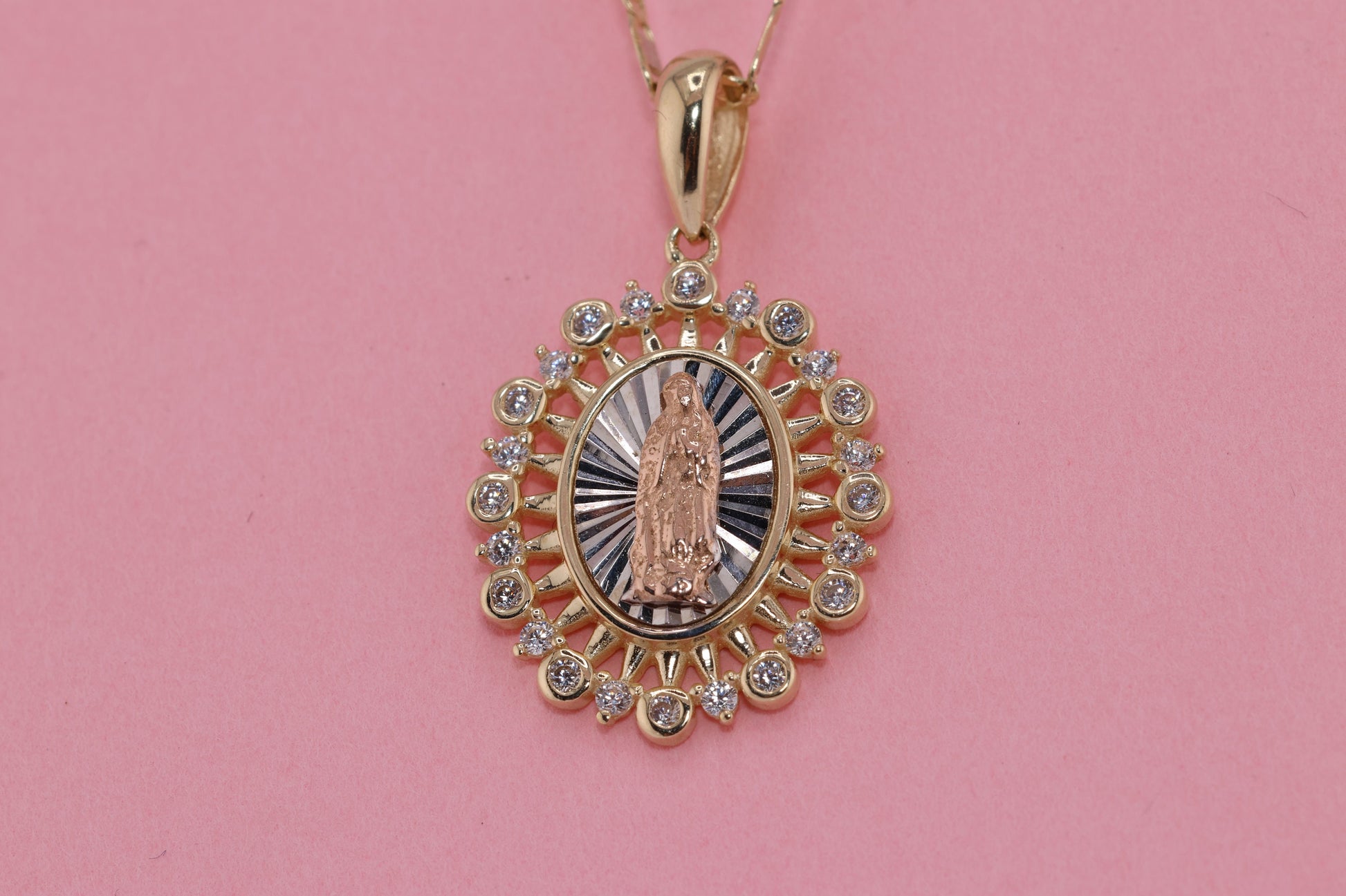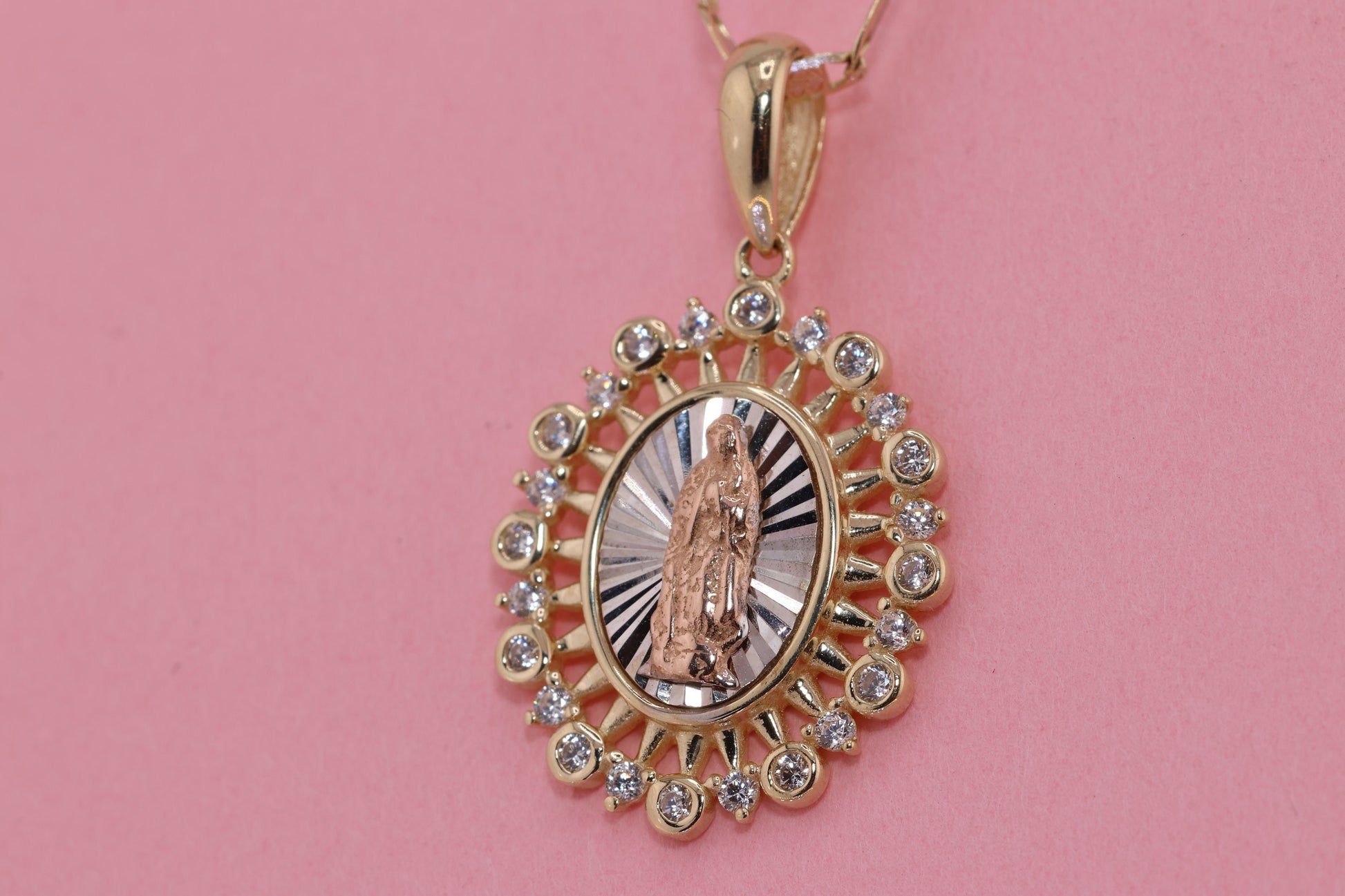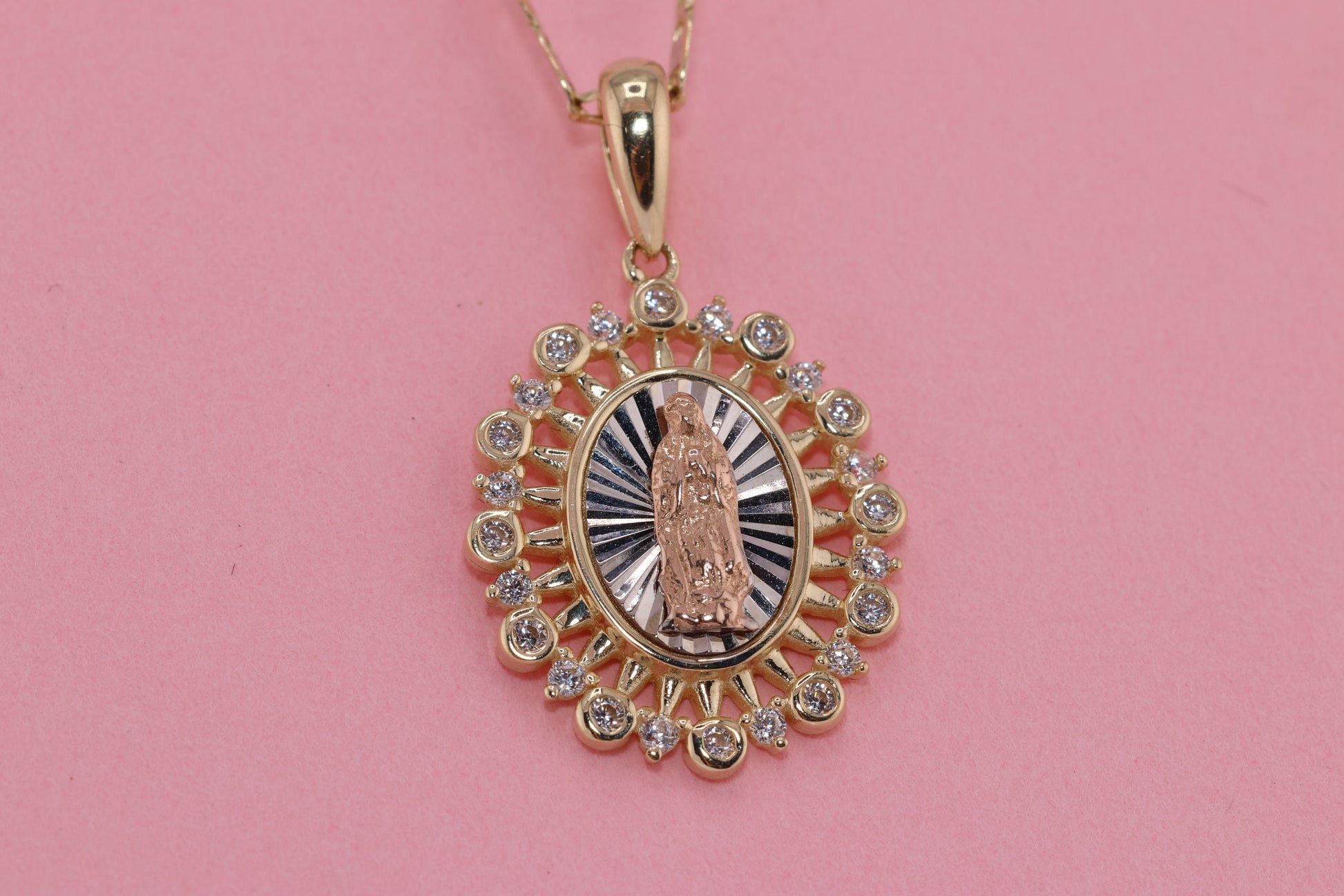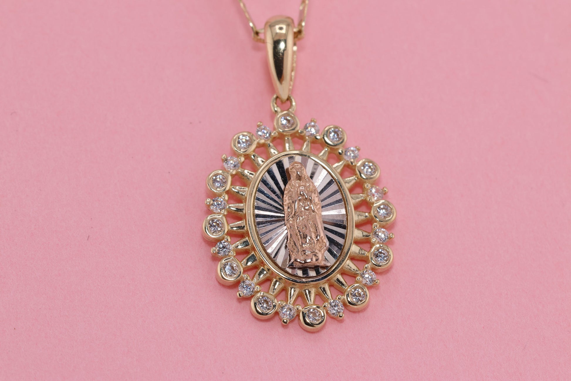 14k Solid Gold Virgin Mary Virgin Maria Lady Guadalupe Heart Pendant E