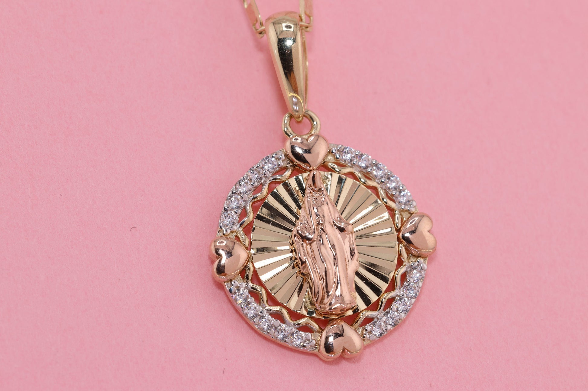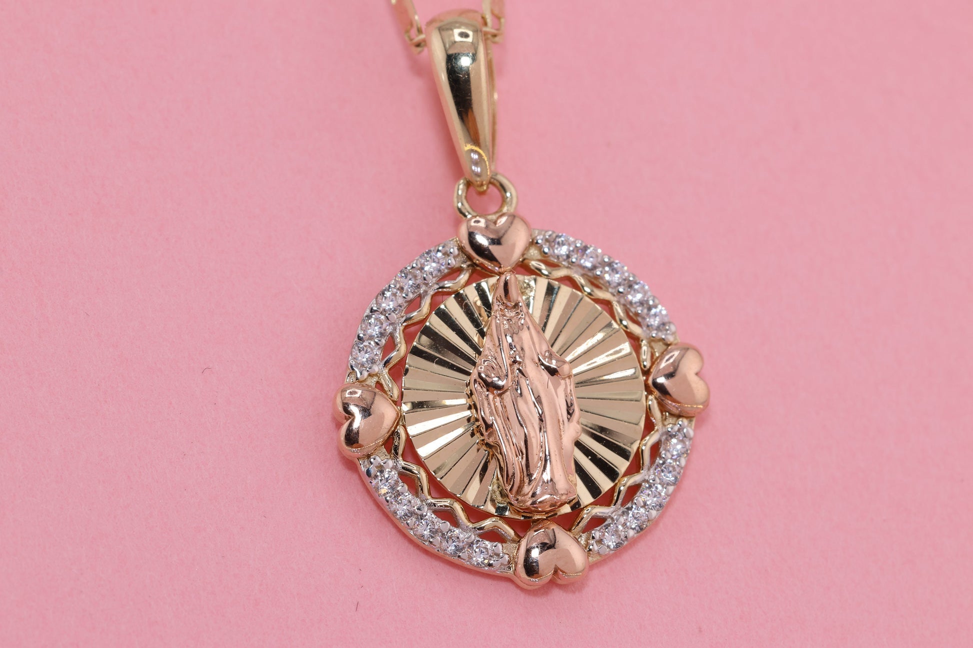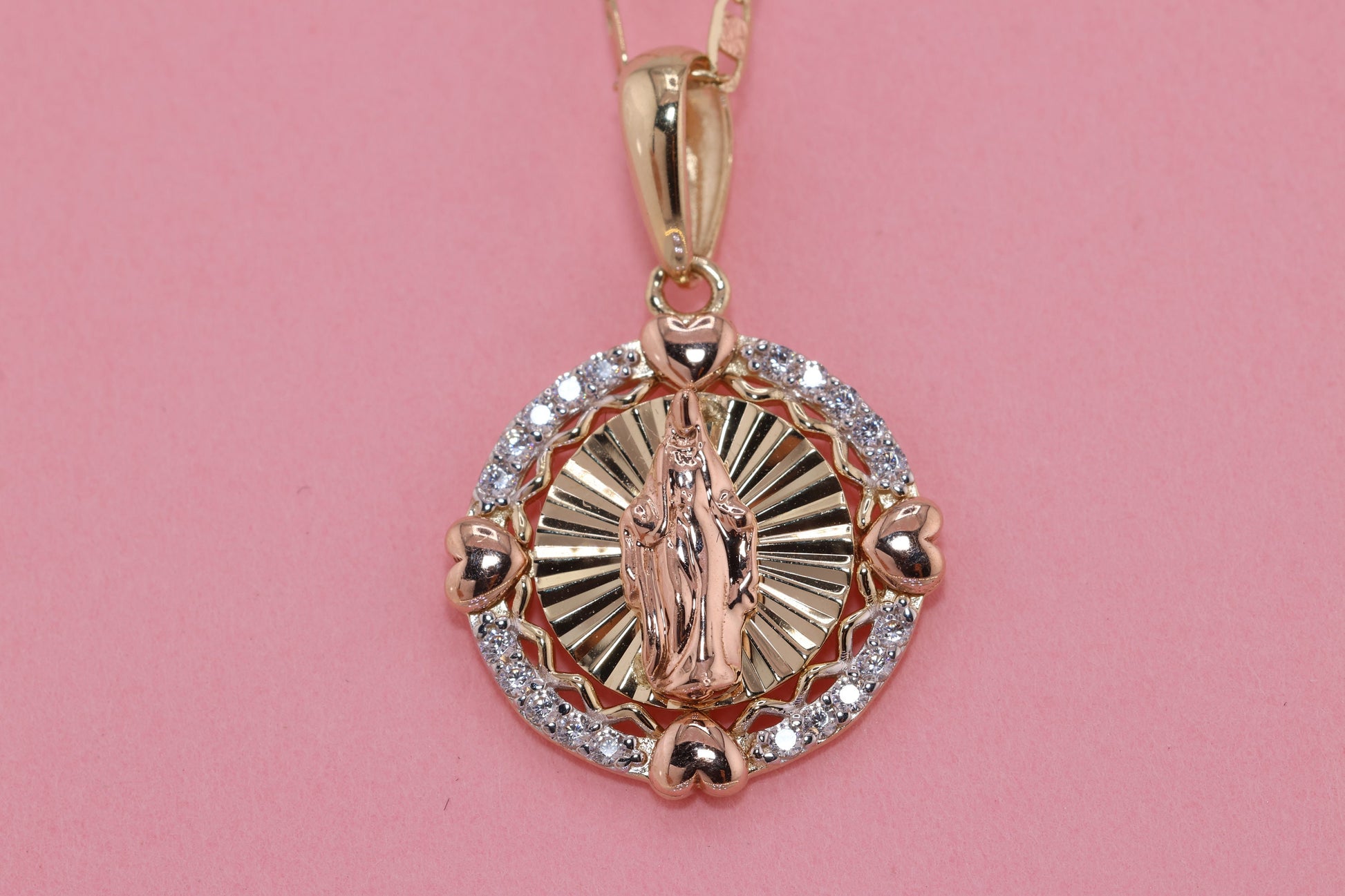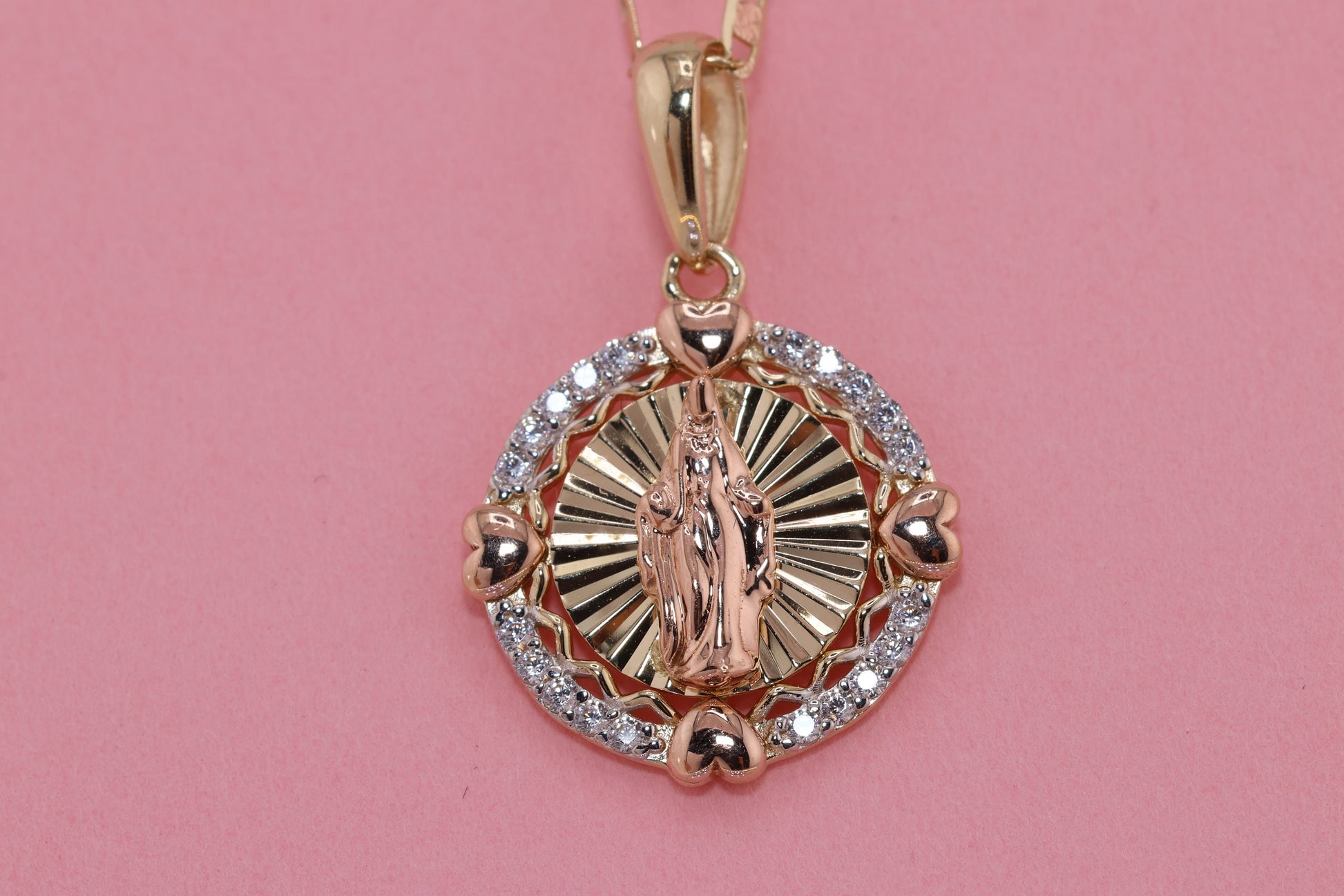 14k Solid Gold Virgin Mary Virgin Maria Lady Guadalupe Pendant H