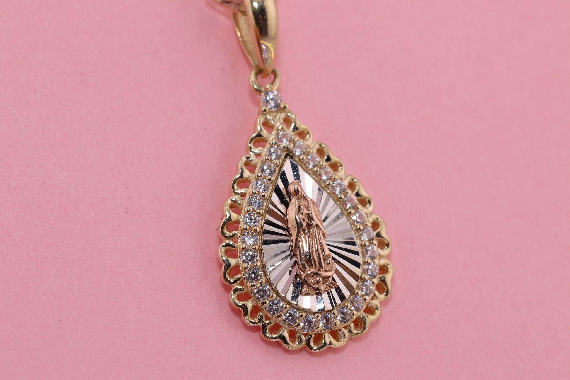 14k Solid Gold Virgin Mary Virgin Maria Lady Guadalupe Pendant K