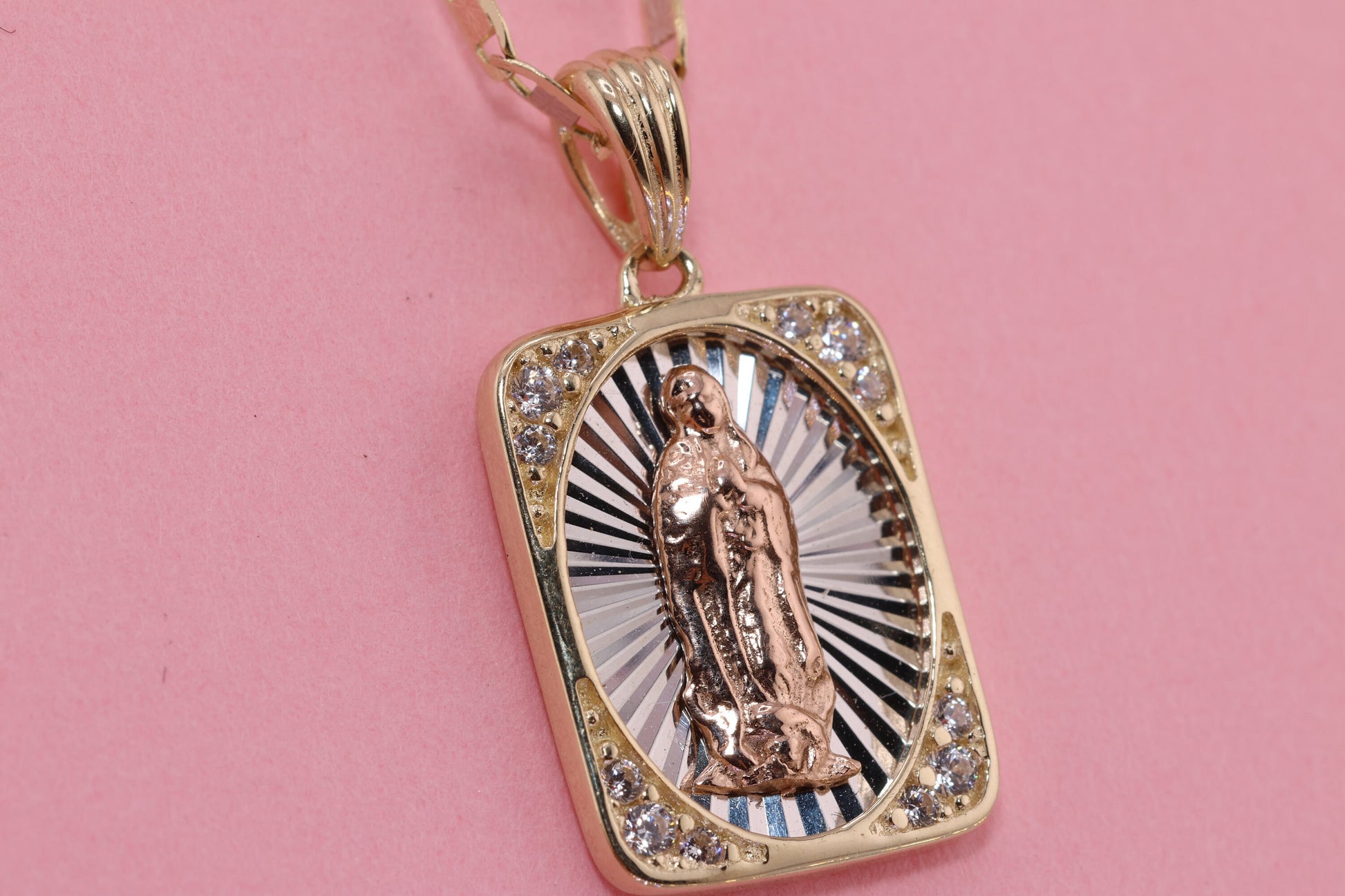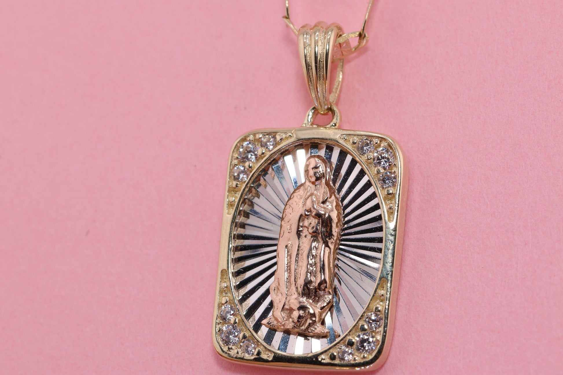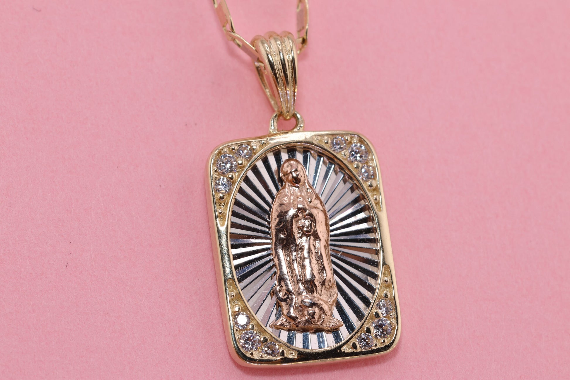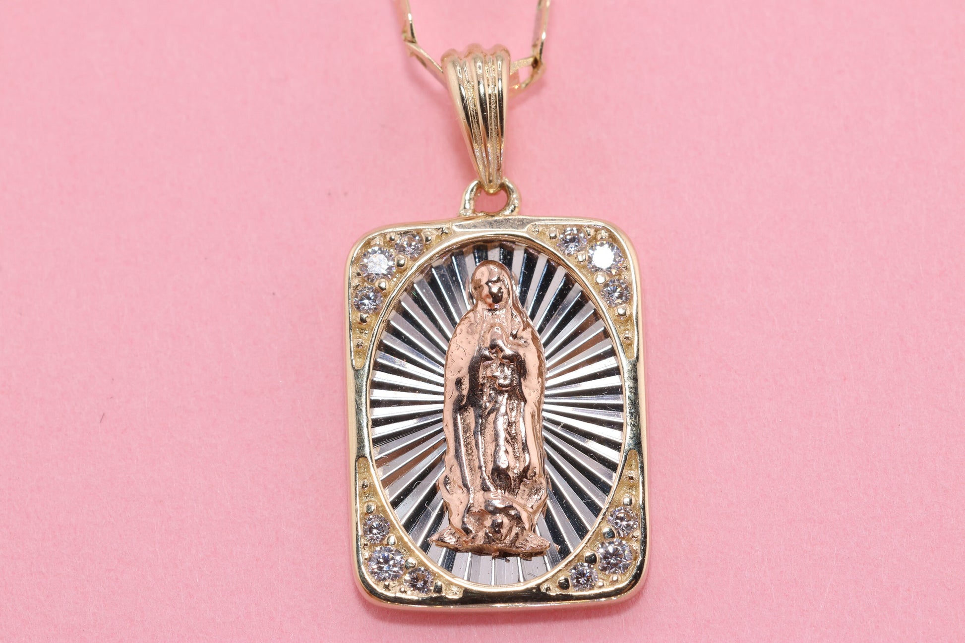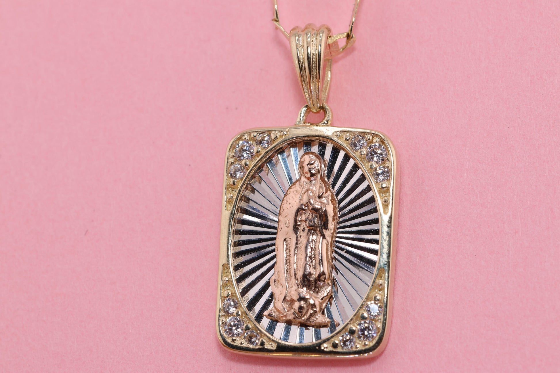 14k Solid Gold Virgin Mary Virgin Maria Lady Guadalupe Pendant N
