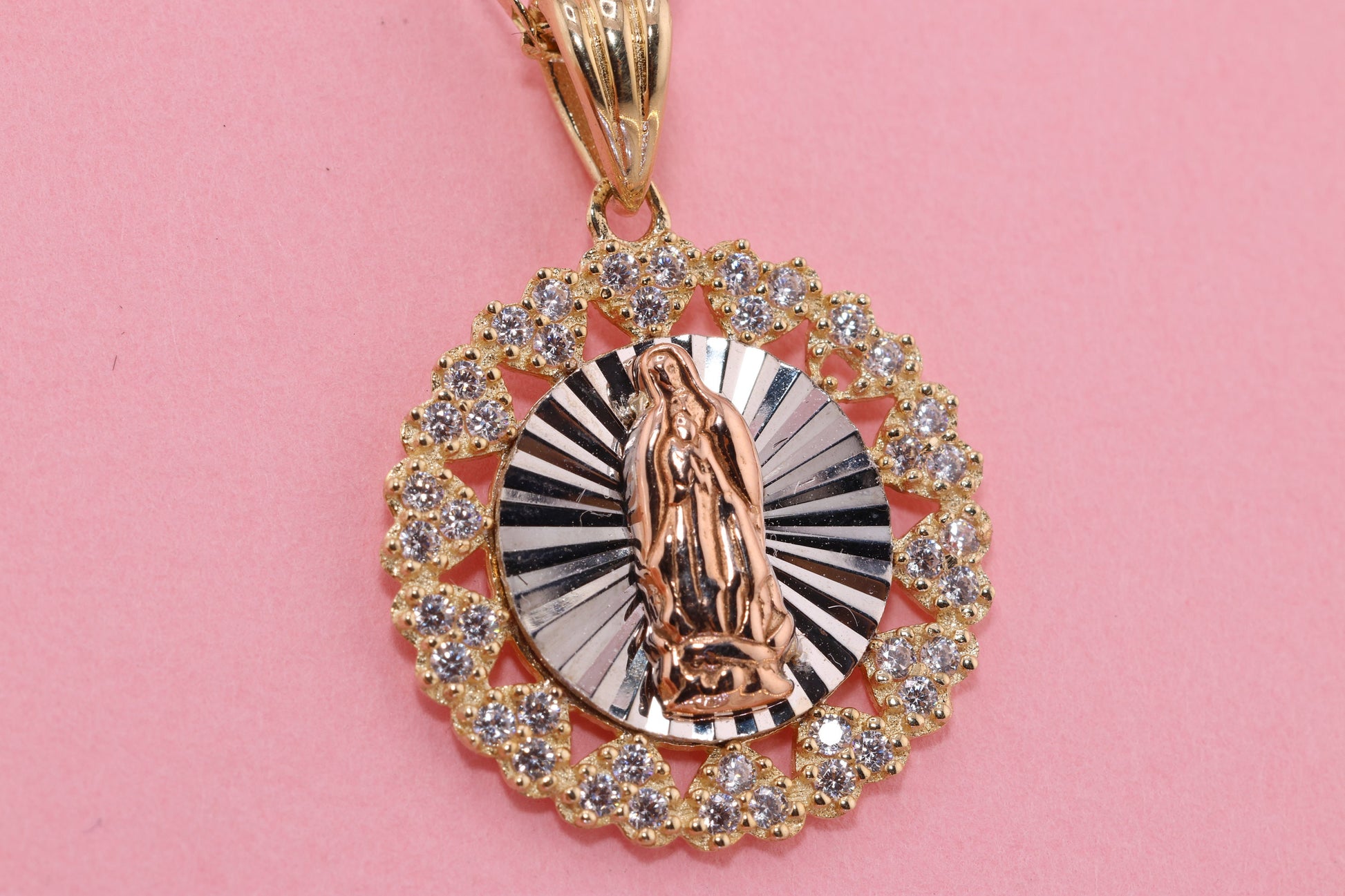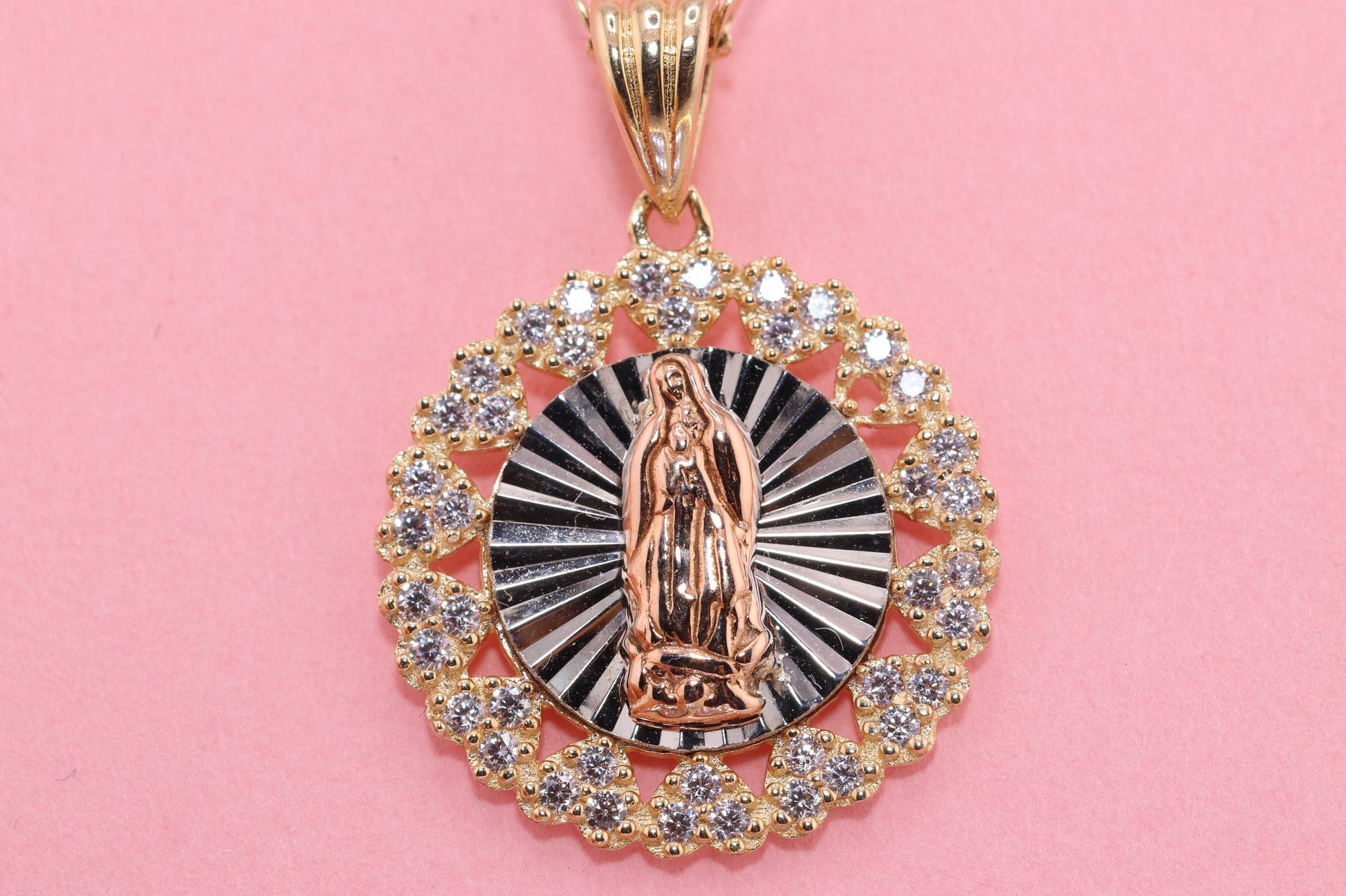 14k Solid Gold Virgin Mary Virgin Maria Lady Guadalupe Pendant P