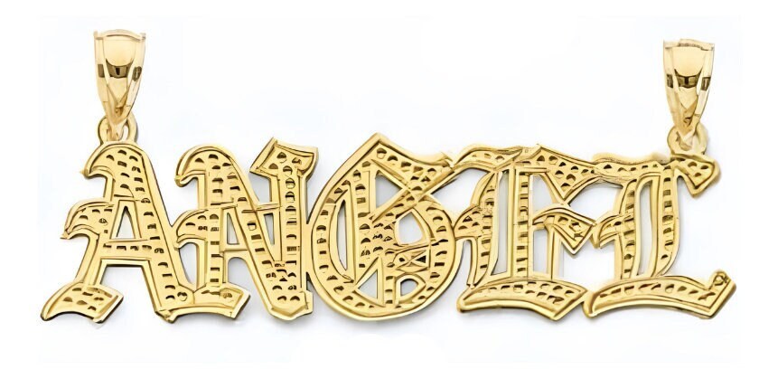 Solid 10K or 14K Gold Personalized Custom HANDMADE OLD ENGLISH Pendant
