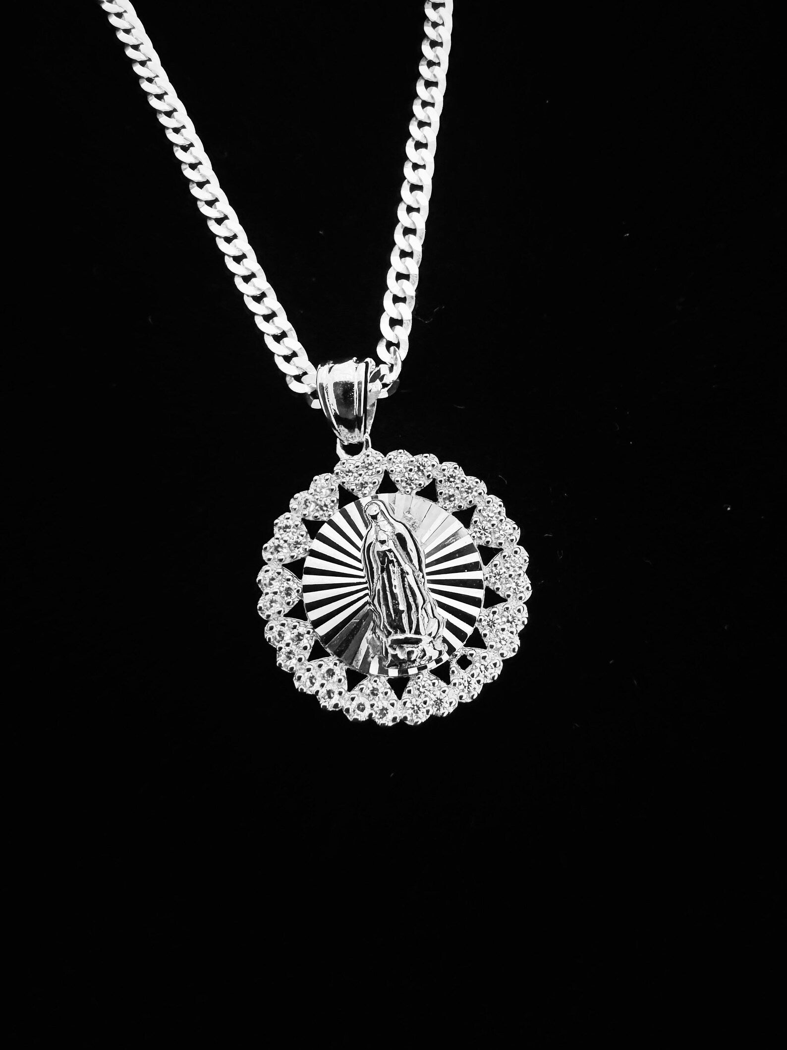 SOLID Genuine 925 Sterling Silver Lady of Guadalupe Pendant D