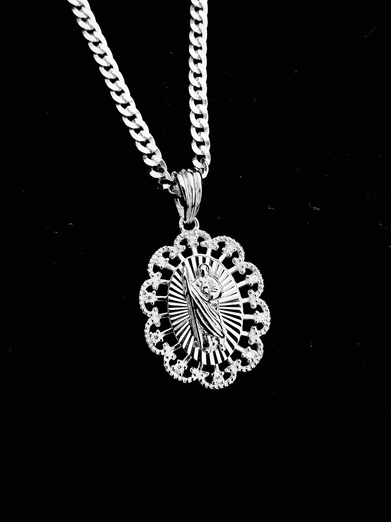 SOLID Genuine 925 Sterling Silver Saint Jude Necklace H